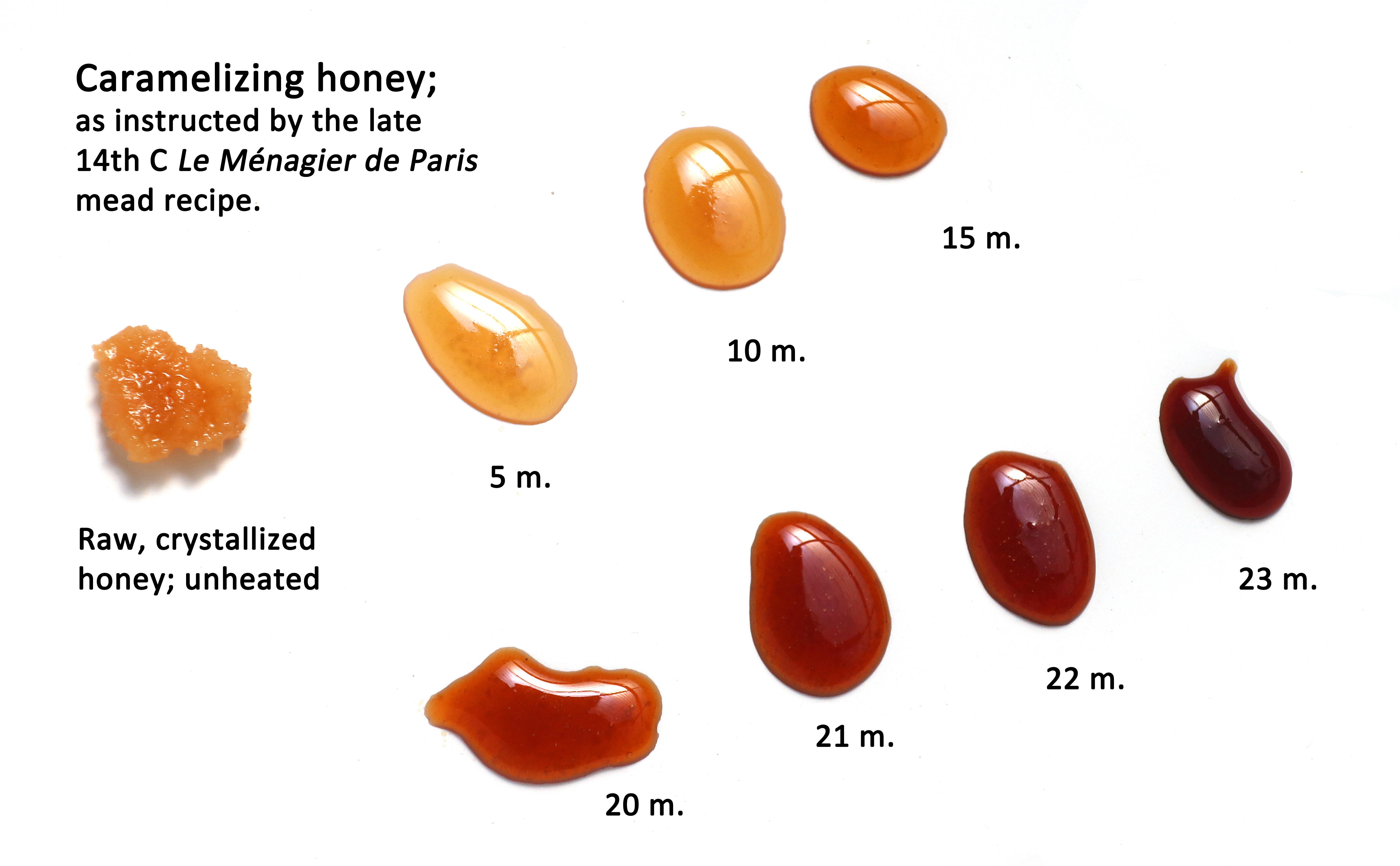The most interesting source for this article is the inspirational recipe from Le Ménagier de Paris, “the Parisian Household Book” from 1393. Le Ménagier includes two detailed recipes for bochet, as well as detailed instructions on how to caramelize honey for bochet.