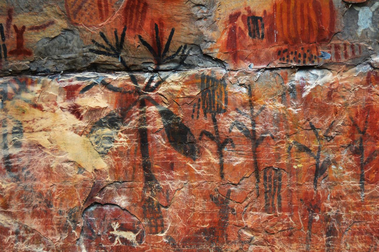 The history of human presence in this region dates back to the oldest known occupation around 12,000 B.P.1 which was in the beginning of the geological era of Holocene (Prous, Brito and Lima, 1994; Freitas and Rodet, 2010). Certainly, the early hunter and gatherer2 communities noticed the natural beauty and possibilities for shelter offered by the canyon formed by Peruaçu River and its numerous caves of varying sizes. The temperate climate and the vegetation in the lower reaches in particular, alongside the rich hydrography of the region provided an abundance of food and medicinal resources, both in terms of flora (e.g. roots, seeds, leaves, wild fruits), and fauna (e.g. fish, mammals, reptiles and birds). This combination of biological sources favoured human occupation: because of the excellence of food variety in addition to the presence of abundant raw material for utensils and weapons, plant fibres, variety of woods, flint, and sandstone.