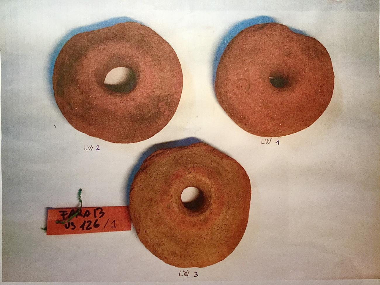 For the purpose of this research, the three loom weights will be referred to as LW1, LW2 and LW3. However, it is important to note that the following loom weight catalogues describe the original loom weights from Fara Novarese.