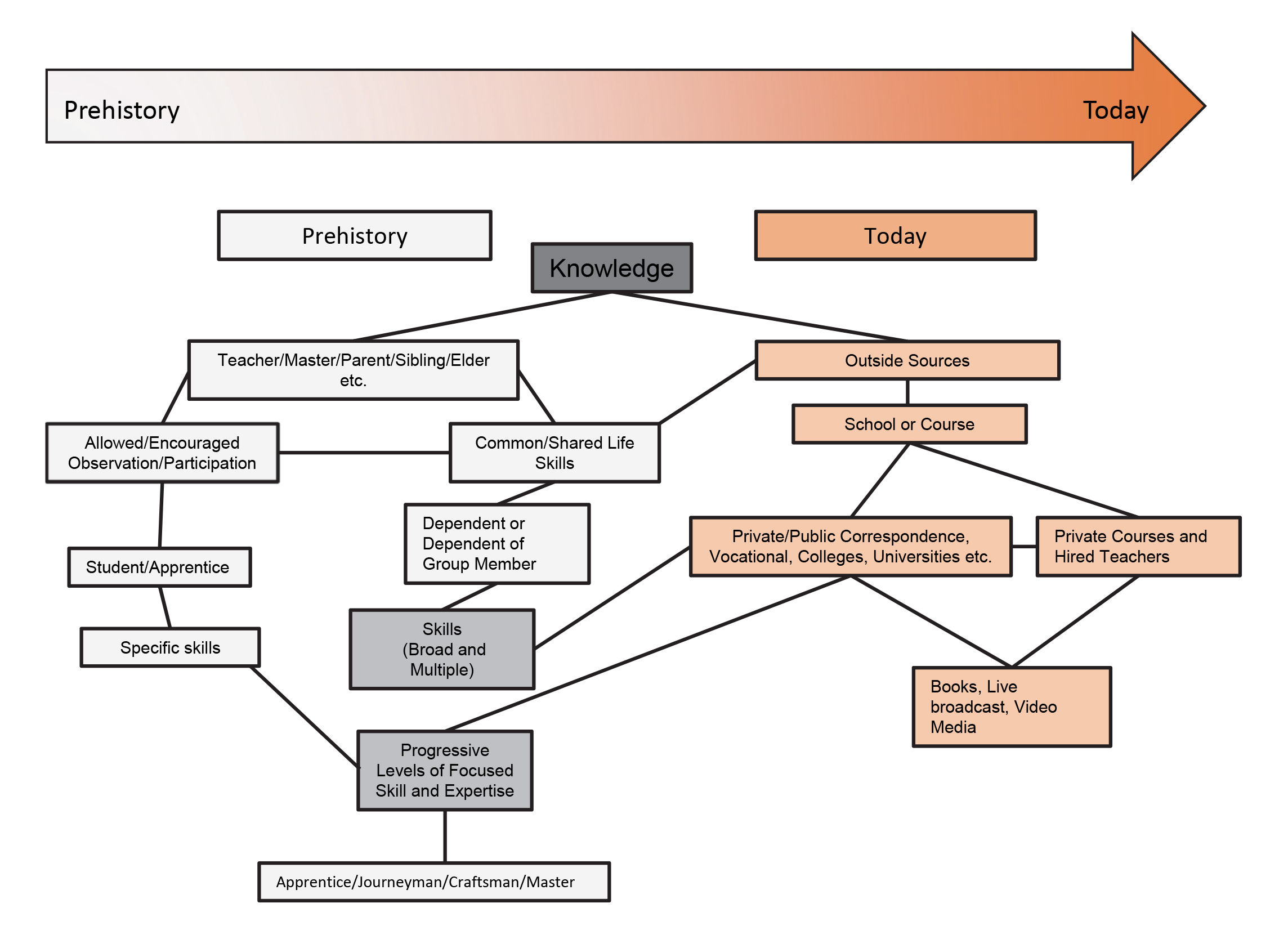 Prehistory to Now: is there a Difference in Knowledge Transfer?