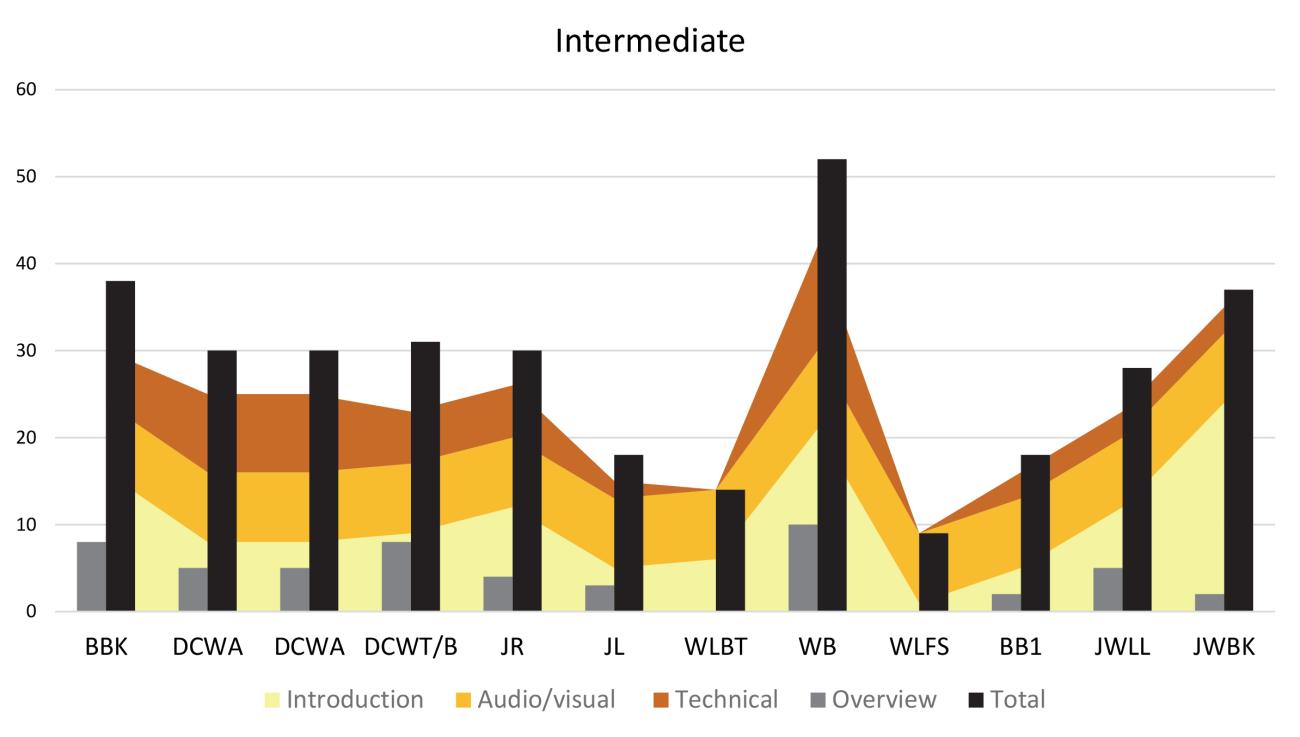 Intermediate level – To be placed into this category the video must display a level of instruction beyond the basics: more advanced fracture mechanics and platform preparation, and so on. 12 videos fell into this category with the highest score awarded 52 (rated as All levels), the lowest score was a 9. The mean score was 27.