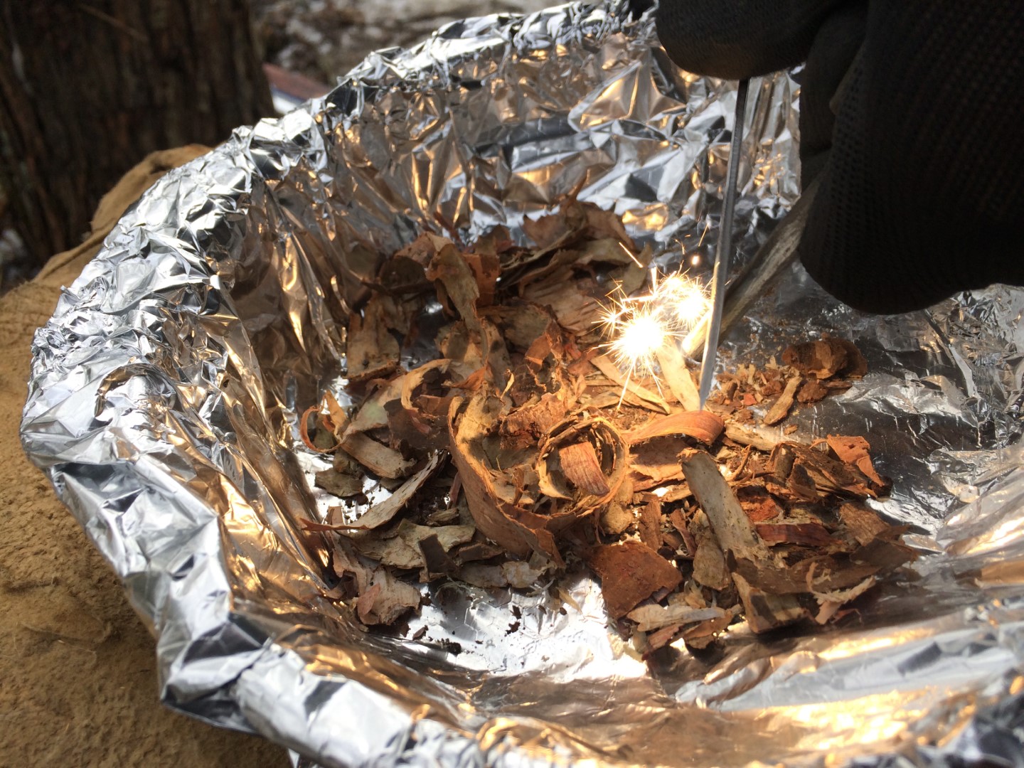 | Powdered Birch bark + MnO2 2:1 | 10 strikes FC Rod | Didn’t catch |