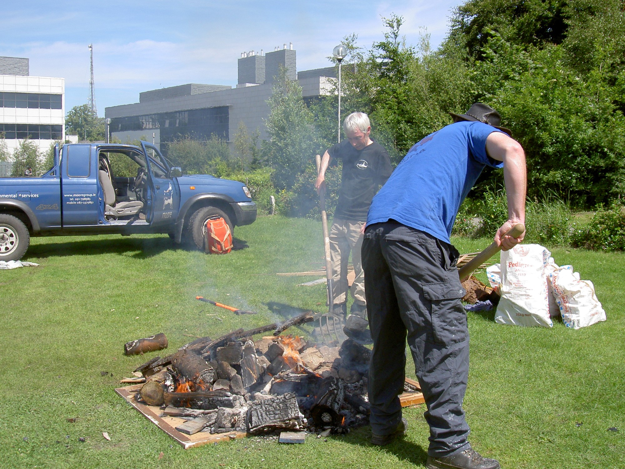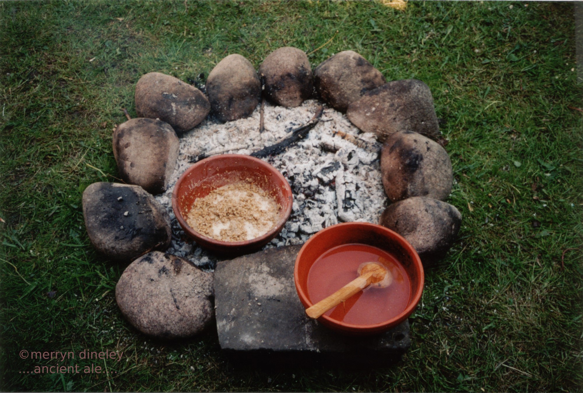 I was inspired by the work of the Moore Group, archaeologists from Galway, Ireland. I first met the group in 2004 at a beer conference held in Barcelona. We discussed the possibility of using burnt mound troughs for brewing beer. Burnt mound troughs, or fulacht fiadh, appear in the late Neolithic and were used throughout the Bronze Age and even into Norse Orkney. They consist of a large horseshoe shaped pile of fire cracked rocks around a large stone or wooden lined trough in the ground. They are found throughout Britain and Ireland. These rectangular troughs can be around 3 feet (1metre) wide, 3 feet (1metre) deep and 6 feet (2 metres) in length. They are often sited in waterlogged ground. Their purpose is to heat large amounts of water (around 200 litres or 40 imperial gallons) using fire heated stones. Water would have been obtained from a nearby stream or river. The troughs were originally interpreted for boiling meat but animal bones are not associated with these sites. They are also interpreted as ‘saunas’ but it is not clear how this would work. (Quinn and Moore 2007).