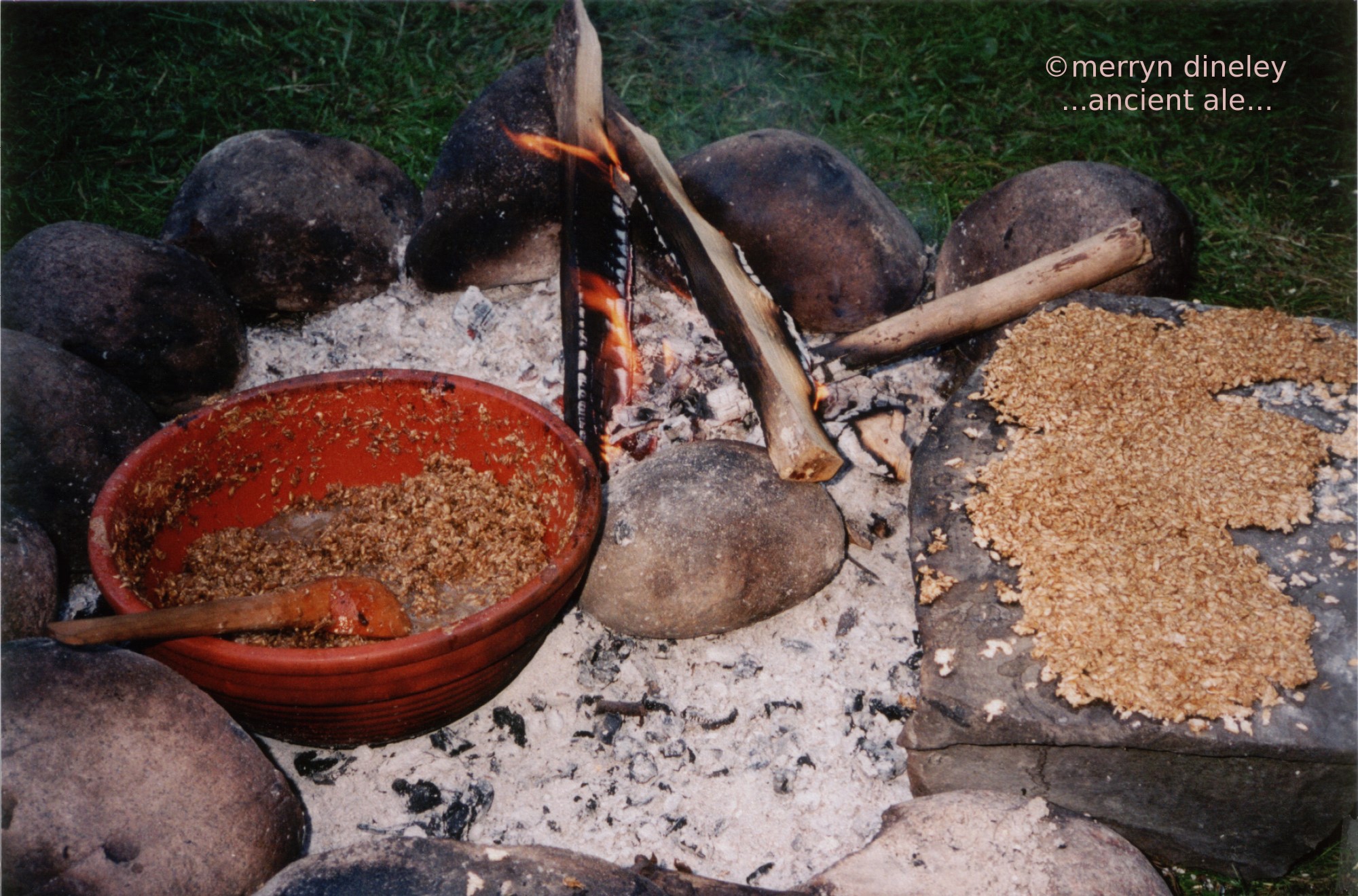 The size and shape of container that can be used as a mash tun is not really important. In this article I have discussed mash tuns made from a range of materials and of differing sizes and shapes, from a 2 litre earthenware bowl to a 200 litre stone lined trough in the ground. The sweet malty biscuits that I made on a hot stone beside the fire did not even need a container. Malt sugars such as these could have been made by the first wild grain gatherers tens of thousands of years ago, leaving no archaeological trace, once they had discovered the trick of malting. Making malt from grain is a valuable skill that, once discovered, will not easily be lost. The question should not be ‘bread or beer?’ but ‘who were the first maltsters?’