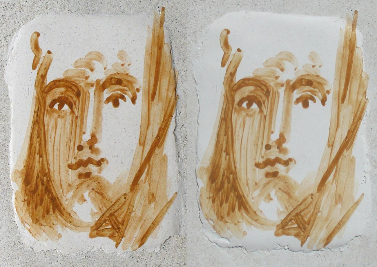 Both of the above techniques can be used to recycle mixtures in order to practice the fresco technique or to practice spreading mortar -as was frequently the case in our research. However, we would not recommend these methods for painting a fresco. The technique cannot be applied to a surface that is larger than a sample without the appearance of cracks and flaking when it dries.