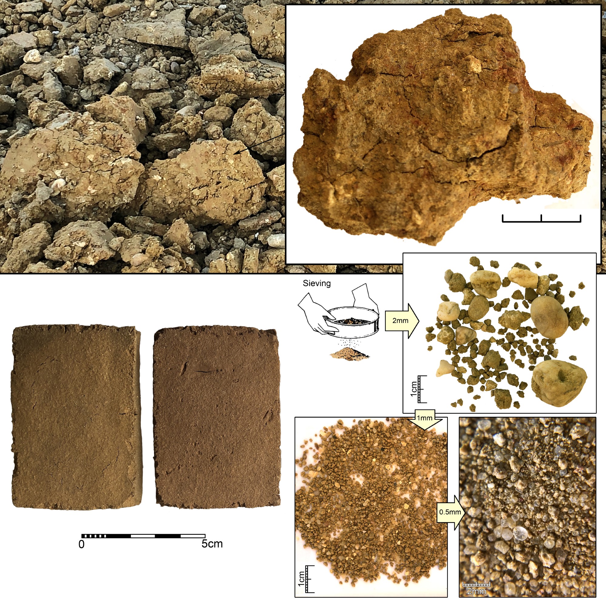 Regarding the clay, we must consider that both the marls and the local "red sands" usually have many non-desired inclusions that must be eliminated by a previous sieving or decantation. Thus, for example, about 4.25 litres of clay from the Villa Maruja - Janer area produce a minimum of 1.1 litres of waste (pebbles, sand, organic material, etc.) after processing. Therefore, in general, these are clay veins that require a long time to process the material to reach an adequate state, so that obtaining enough clay to produce 40-50 amphorae (which is what we calculate would fit in a large kiln of the time) would have meant a significant effort in terms of time for extraction and decanting/processing.