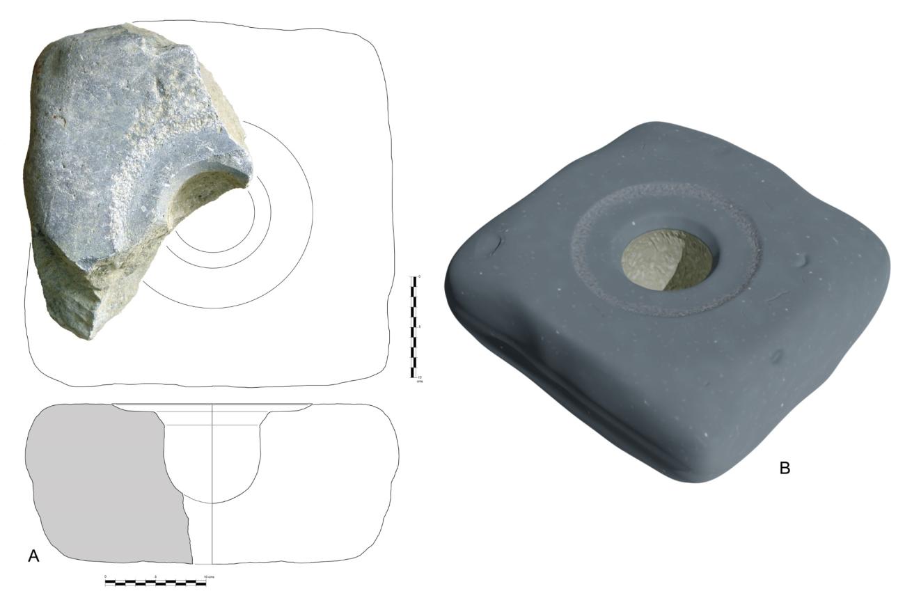 A much-discussed example of equipment is the socketed slab found in the excavations of Cancho Roano, which was first interpreted as a door hinge (Celestino, 1991; cf. Meseguer and García, 1995). Gran-Aymerich proposed, for the first time, that items of this type may be potter's wheels, with convincing arguments that have been broadly accepted by other researchers (Gran-Aymerich, 1991; Gran-Aymerich and Gran-Aymerich, 1991; cf. Jiménez Ávila 2013, pp.188-193; Soares et al., 2013), including the authors of this paper.