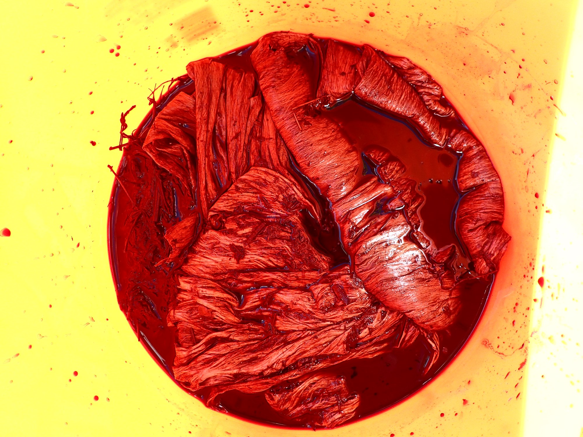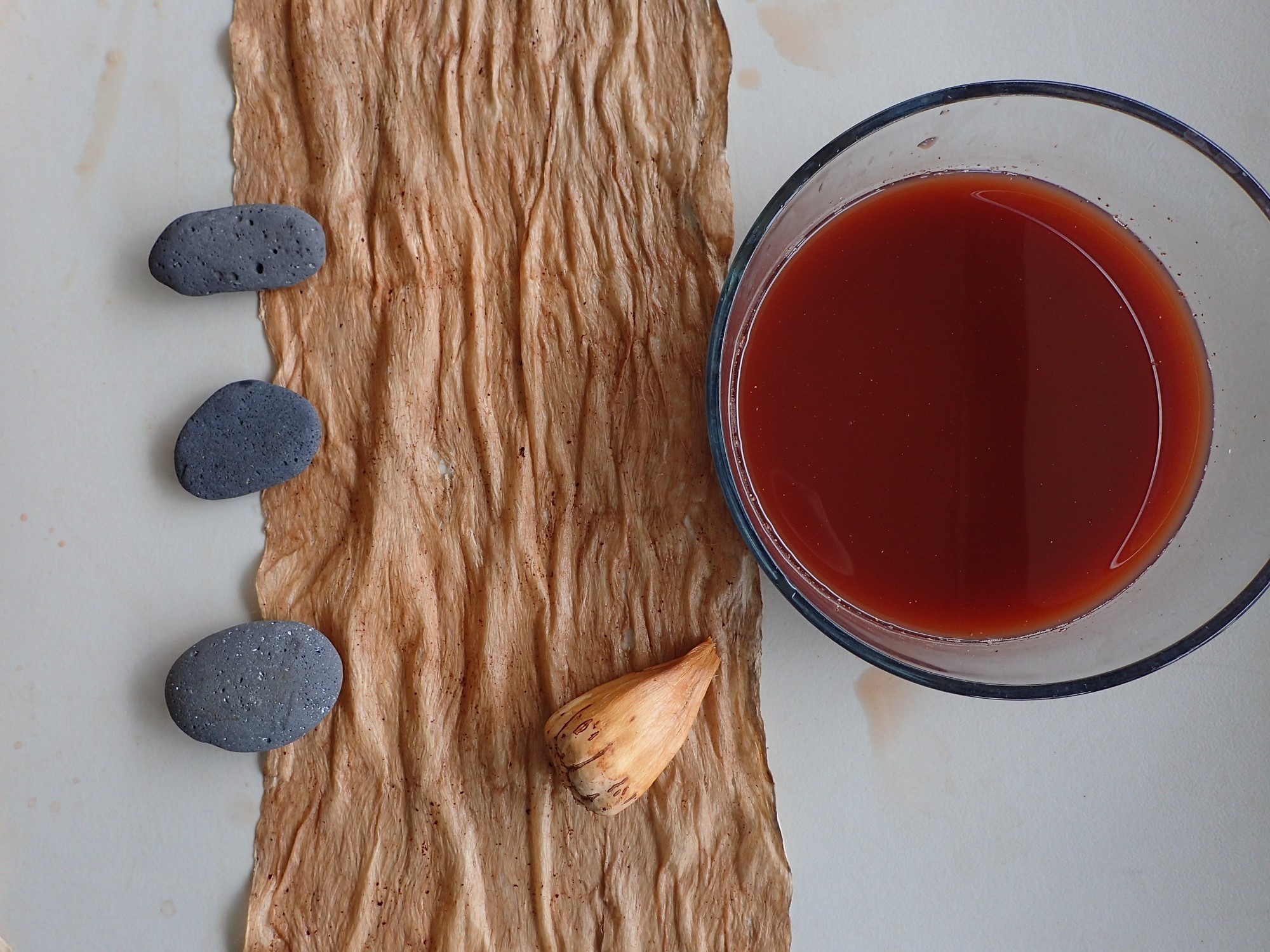 Hili: tannin-rich dye obtained from the bark of several tree species. In this experiment, I used hili kukui (obtained from the bark of the kukui tree, Aleurites moluccanus).