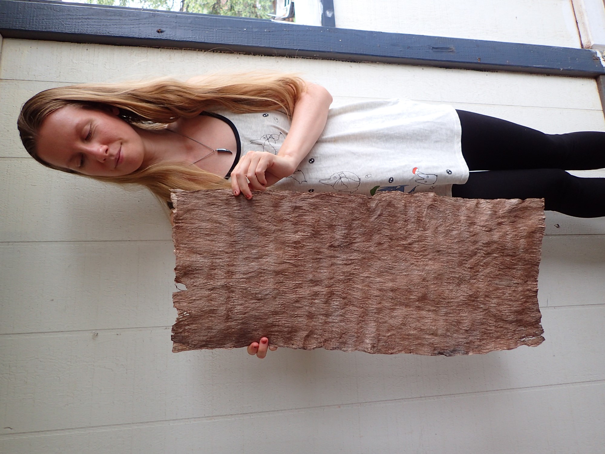 Kapa: Hawaiian barkcloth, made using the bast (inner phloem) of certain tree species, with wauke (Broussontia papyrifera, paper mulberry) being the most common species used in Hawaiʻi.