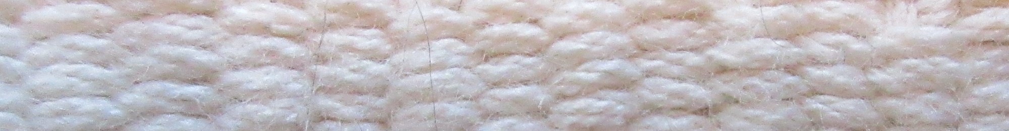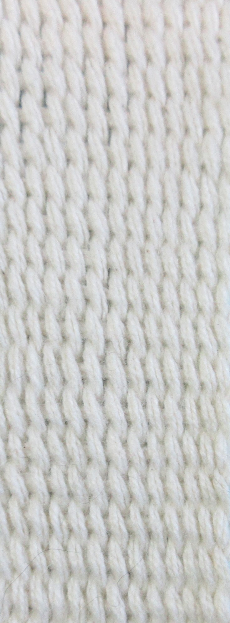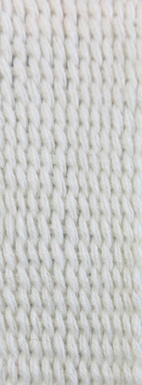 The second pattern produced was also plain warp twining, but with warp threads of the natural cotton yarn that were evenly spaced to create an openwork fabric. The same technique was used, but after three initial rows of packed wefts to stabilize the warp and to regulate the width of the textile, the subsequent wefts were spaced 8 mm apart, creating an openwork twined textile structure also known as a gauze fabric or netted textile (See Figure 9. Top). A variation of this pattern is to turn each lunate weight individually one full turn for a double twist between each weft row; this places the wefts further apart and squares the spaces, creating a form of openwork/gauze/netted structure specifically known as square netting. A thicker yarn or unspun roving material may also be used as a weft (See Figure 9. Bottom), and when the weft is densely packed, this creates a thick, fluffy, warm textile.