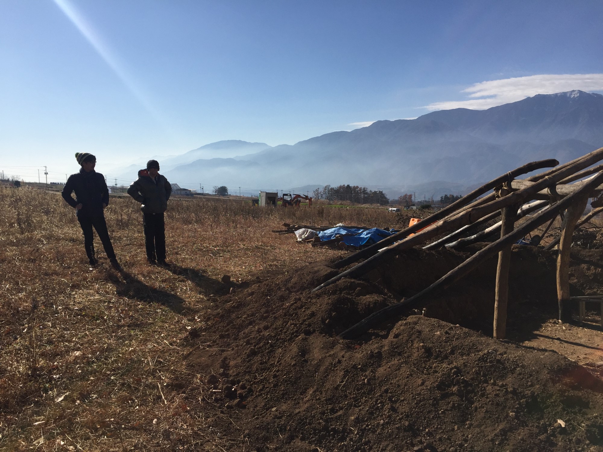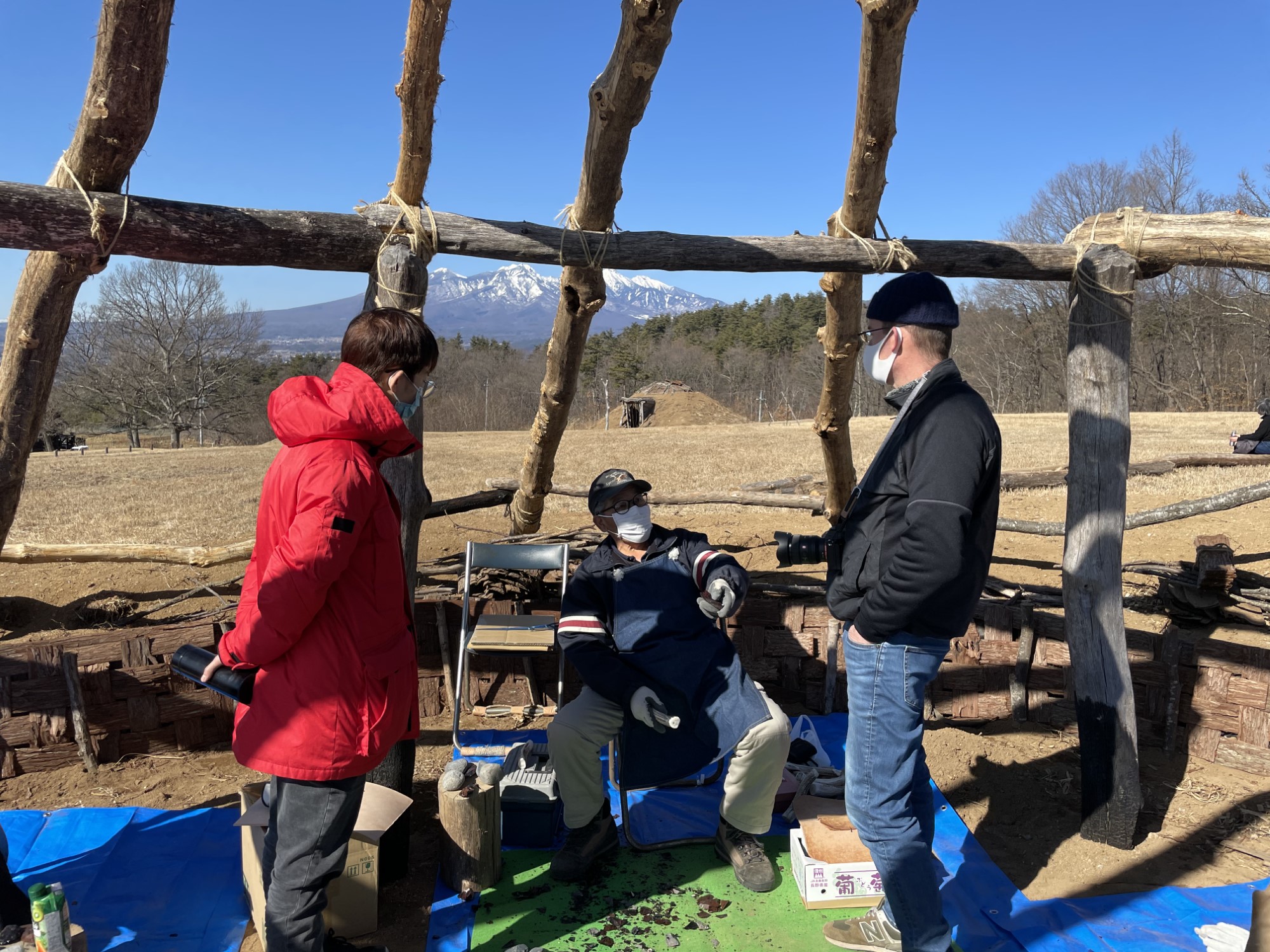 The authors of this article first visited Umenoki with Sano Takashi in December 2017 (See Figure 10). At the time, the site was little more than an open field with a parking lot and information center. One feature that stood out was that a pit dwelling in the middle of the field was being constructed with a roof that would be covered in bark and sod and would have a secondary entryway through a hole in the roof. A second striking difference was that the park was opened to the public even though reconstruction of the pit dwellings had only just begun. This contrasts to most other sites in Japan, which are typically opened to the public only after they are “finished”.