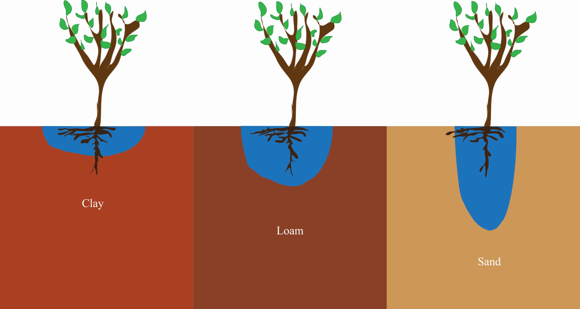 For the successful planning and application of clay pot irrigation, it is important to know the key properties of the pots, the soil, the plants and the environment. The most relevant pot properties include height, shape, volume, maximum outside diameter, wall thickness, surface area, hydraulic- conductivity, base diameter, material composition, and firing temperature, of which the latter two determine porosity (See Figure 3). Relevant soil properties include its hydraulic conductivity and salinity (See Figure 4). Among the key properties of the plants are their root properties and water demand (See Figure 5). Concerning the environment, key factors include local climate and weather conditions as well as other plants nearby.
