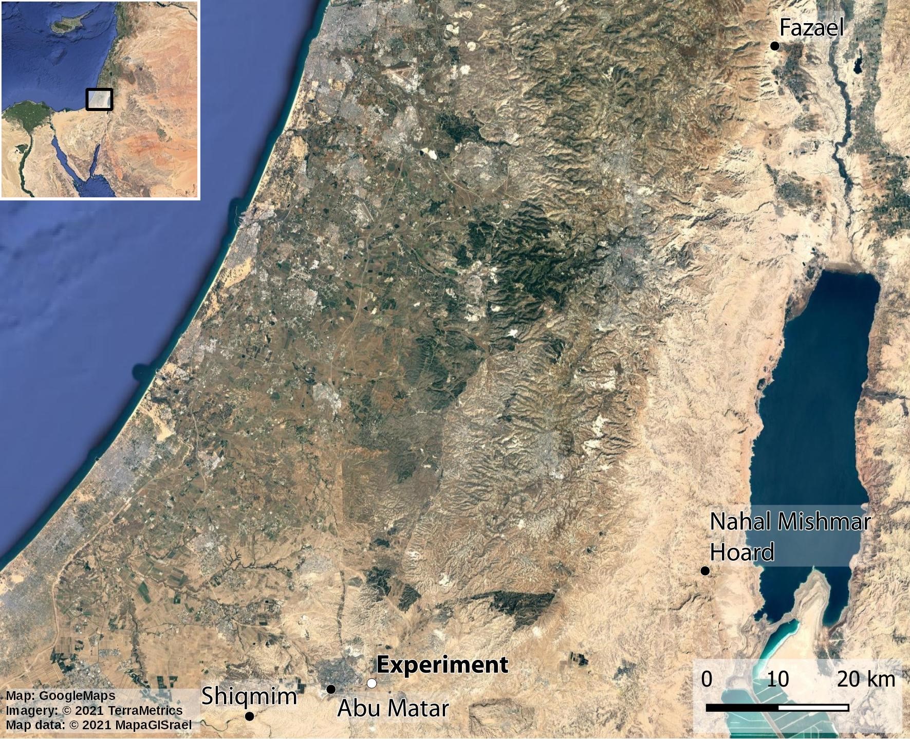 The earliest metallurgy in the Southern Levant dates to the Ghassulian (4500 to 3800 BC). Among the most recognisable finds are the outstanding polymetallic lost wax cast objects of the Nahal - Mishmar hoard (Bar-Adon, 1980). A potential production site for such objects was recently suggested at Fazael in the Middle Jordan valley (Rosenberg, et al., 2020). Hitherto, the only preserved production remains are mould fragments on metal objects. The mineralogical composition of these mould fragments attests to a local production of the objects (Goren, 2008; 2014). No suitable deposits of polymetallic ores exist in the area. Therefore the metal was imported, most likely from Anatolia or the Southern Caucasus (Key, 1980; Tadmor, et al., 1995).