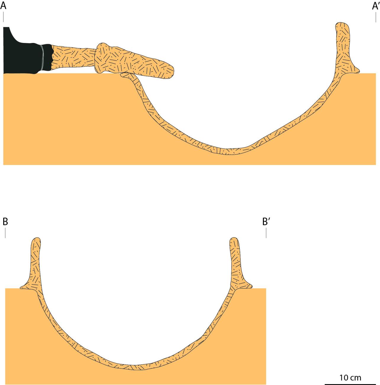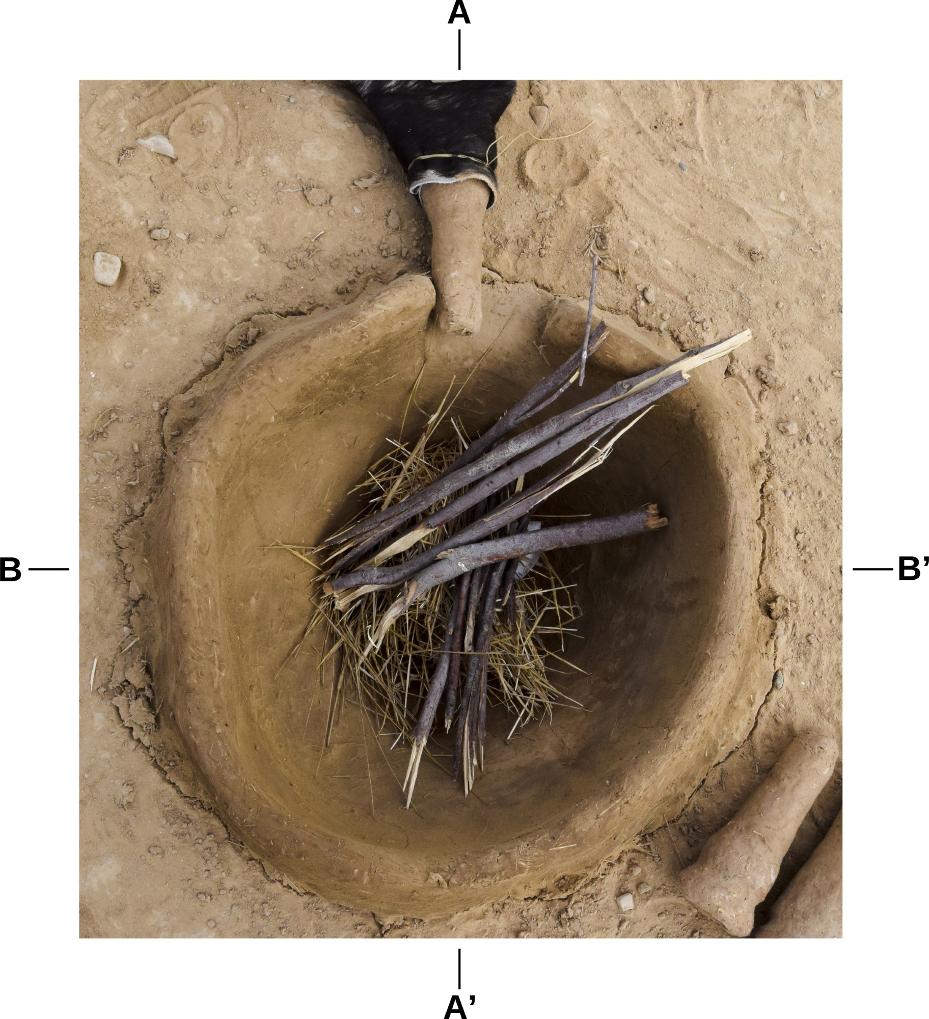 The dimension of the furnace and its walls follow the reconstruction of Golden, Levy and Hauptmann (2001): A round pit of 30 to 40 cm diameter and about 20 cm depth with about 10 cm high furnace walls that have an opening on one side (See Figures 2a–c). They reconstructed an unlined furnace pit based on the texture of the pit’s surface and slag adhering to it. In contrast to their reconstruction, some furnace fragments from Abu Matar seem to originate from furnace linings. Due to the surrounding soil and the clay paste consisting of Negev loess, a separate lining is unnecessary, and a smooth and regular pit surface can be easily achieved by smoothing the sediment. The sediment crumbles easily, however, so a separate lining was necessary to ensure proper removal of the pit surface after the experiment and allowing a close comparison with the archaeological remains in the lab. The pit lining of the experimental furnace was about 1 cm thick (See Figure 2b). It was left to dry overnight and did not have any drying cracks the following day.