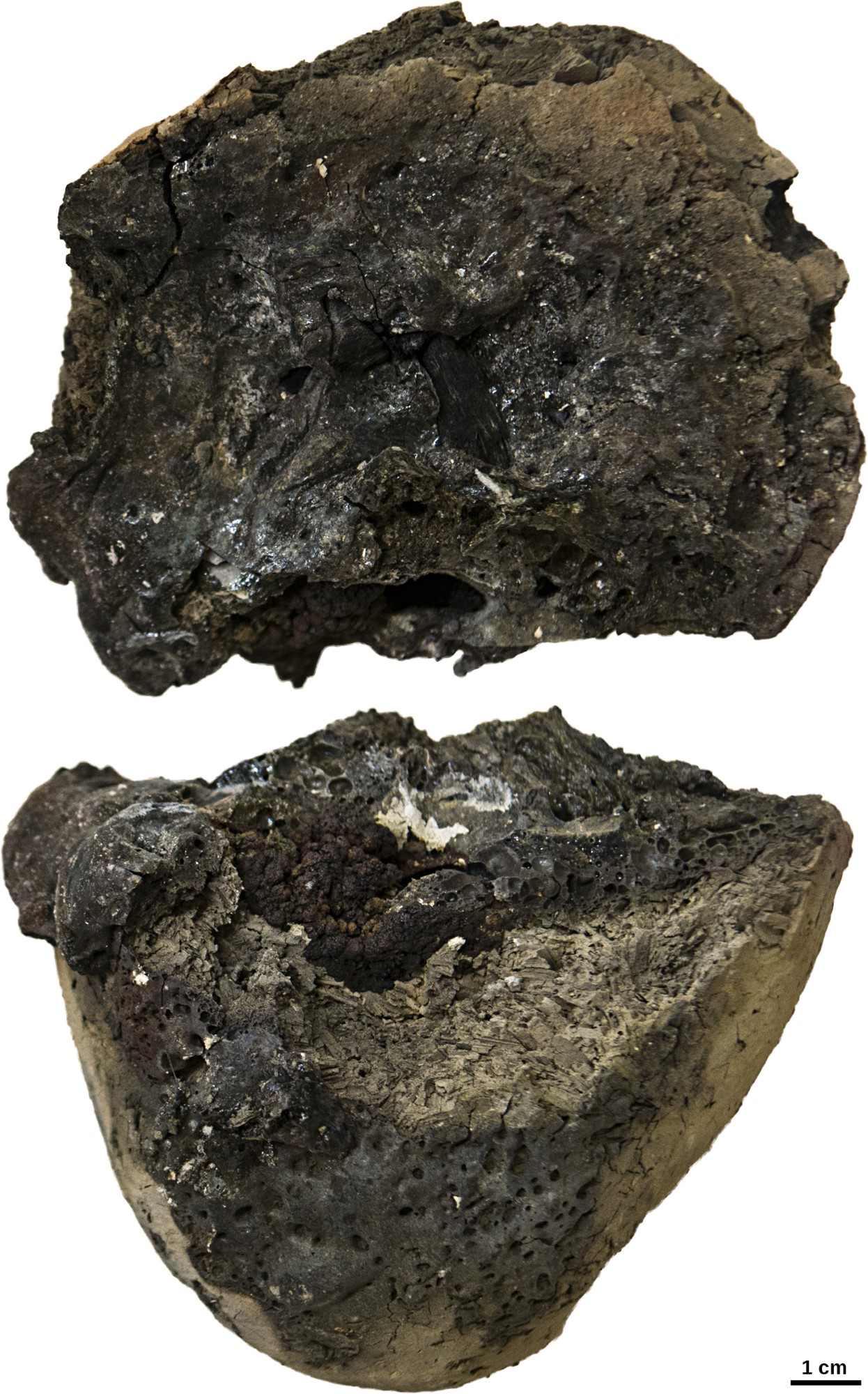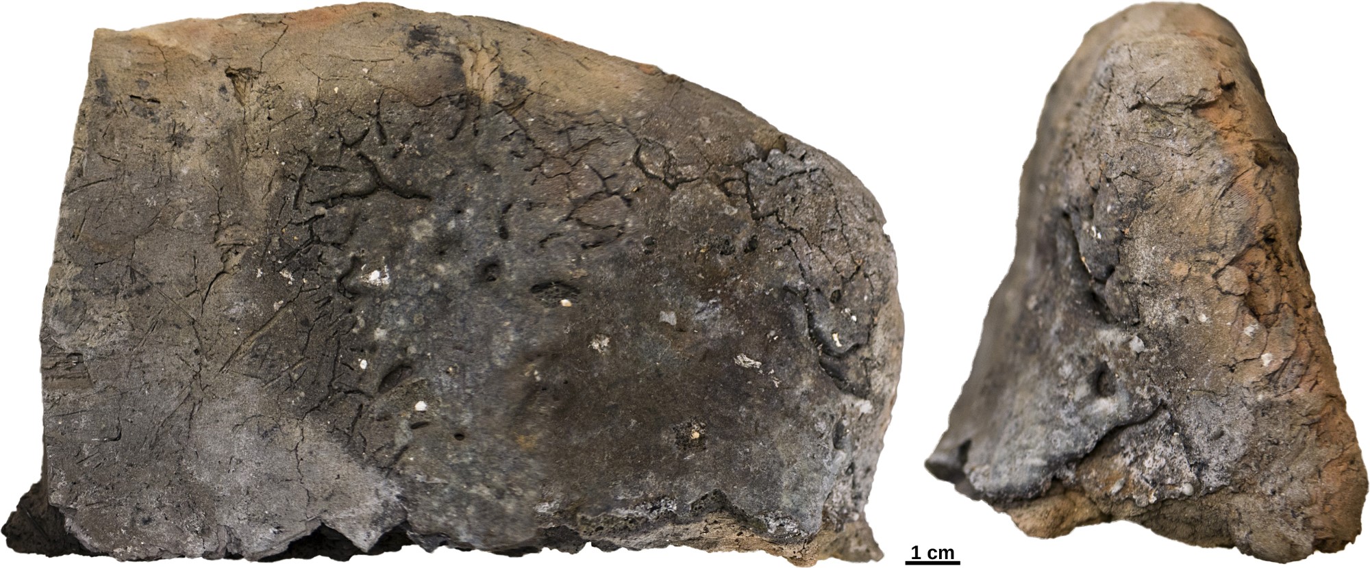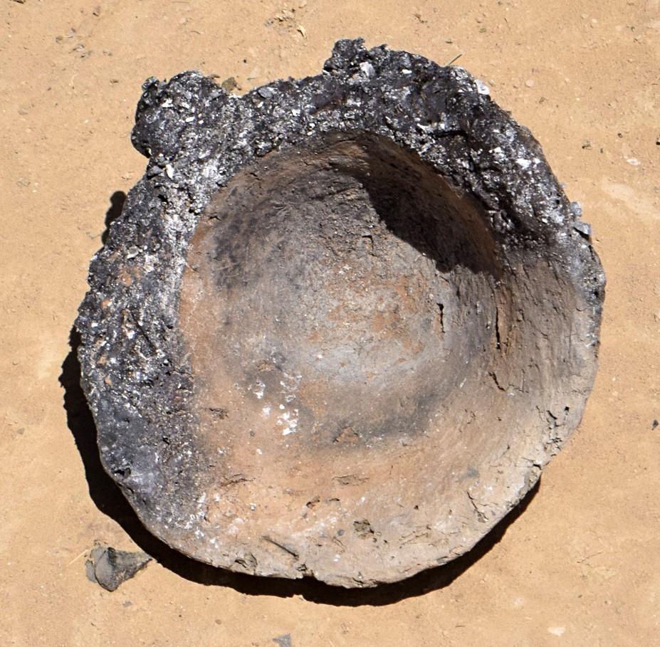 The extensive cracks and spalling of the Negev loess crucibles in the clay during cooling were probably caused by the rehydration of the calcium carbonates (cf. Shoval, et al., 1993). This feature is absent on the preserved archaeological crucible fragments, further indicating a highly localised hot zone on the top of the crucible in the ancient process and significantly lower temperatures on the outside of the crucible.