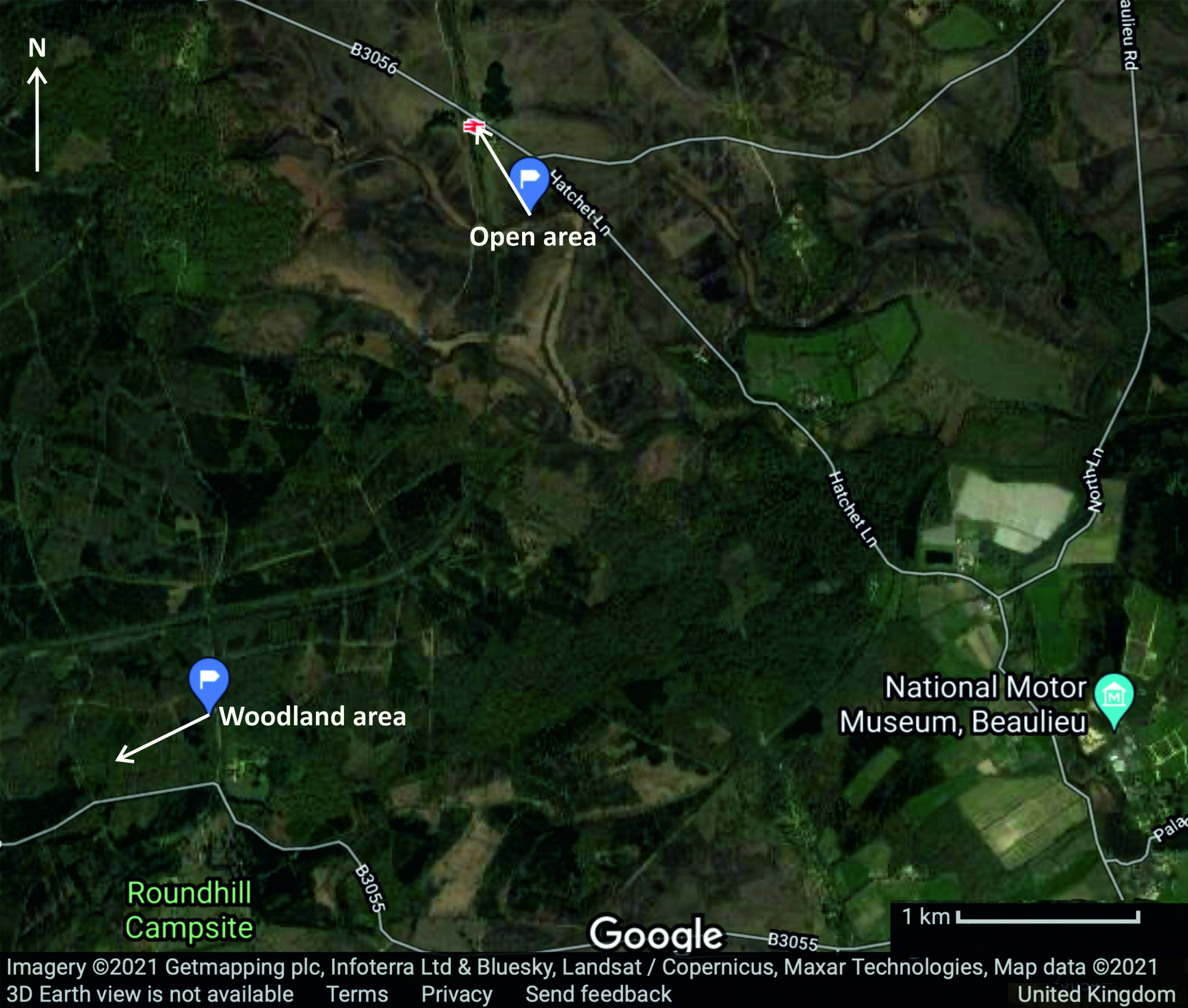 To measure the distance over which the instruments could be heard, one person stood in a carefully chosen position (See Figure 10) and played each instrument in turn. Two people (in this case female aged 24 and male aged 23) moved backwards to find the furthest distance at which they could still hear the instrument. The instruments were played loudly, as that should give the largest range of distance over which the sound travelled in the conditions on the day chosen, and with those listeners. Measurements were taken for both the highest and lowest notes of the instrument. To measure the distance over which the sound could travel a piece of string 100 m long was used with meters marked in black, and red and blue used to emphasise 5 m and 10 m respectively. A compass was used to ensure a constant direction was measured, northwest for the open area and southwest for the woodland area. The directions were chosen for accessibility. As the string was only 100 m long the instruments were all checked at this distance and those which could not be heard at 100 m were measured at the point where they became inaudible. The string was then moved on to the next 100 m, again using a compass, and so on. When the sound of the bone pipe could be heard over a distance greater than 250 m the distance was measured using GIS coordinates as beyond that distance a bog had to be navigated meaning coordinates were the easiest way to measure the distance. The measurements which were made using coordinates are shown with an asterisk. To allow for comparison both the distances over which a 23-year-old male human voice carried and reed carried were included.
