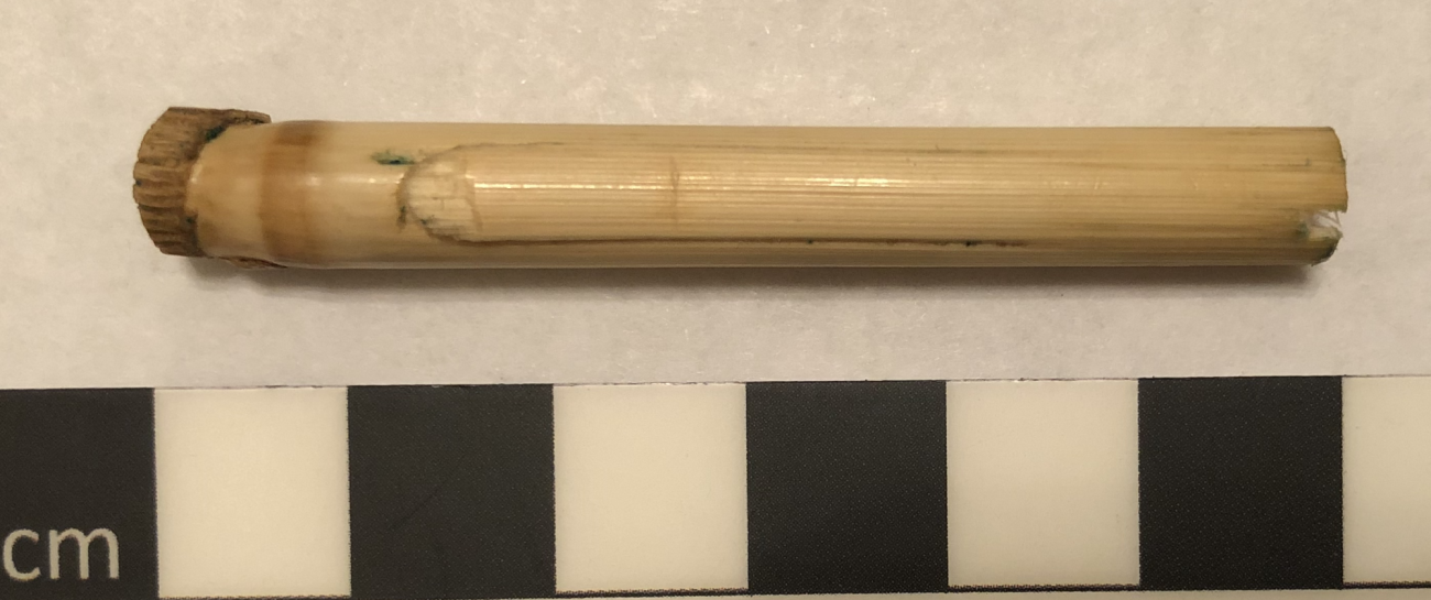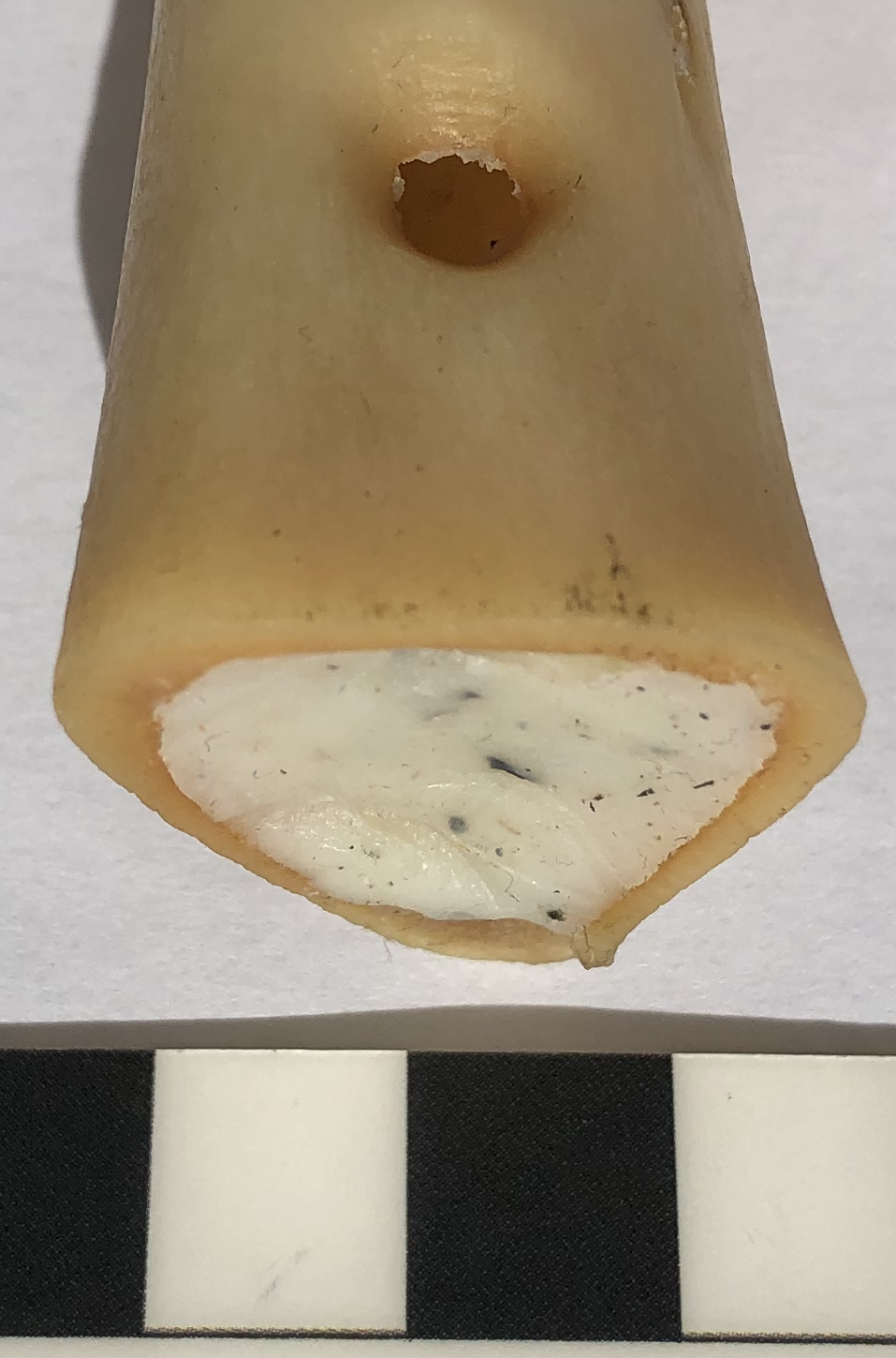 While both reed and duct mechanisms were relatively simple to create with objects commonly available at the time, a reed was perhaps the easier, as it only required a slit made in a piece of reed. In both examples, the duct was created at the opposite end of the bone pipe from where the fingerholes were because the other end of the finds were complete and do not feature a window (See Figures 8 and 9).