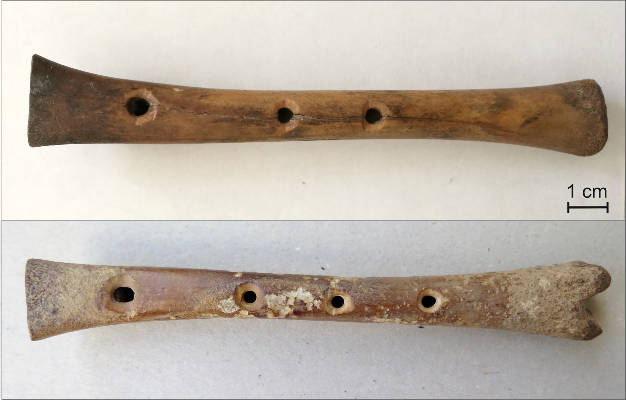 In most cases, archaeological find contexts yield only general information about the cultural setting, e.g., whether the artefact comes from an urban or a rural environment, a dwelling, a castle or an ecclesiastical building (see Brade, 1975; Leaf, 2008, pp.236–457). Medieval music treatises do not mention bone flutes at all, and manuscript illustrations and other iconographic sources appear to depict mainly wooden flutes or other types of wind instruments, such as trumpets, horns, shawms (Leaf, 2008, pp.20–30). The reason for this dismissal might be related to the status of the bone flutes, being considered as somehow commonplace or plain, too trivial to be treated in written and pictorial records. A somewhat similar marginalization appears to occur in the present-day research literature that lacks updated overviews, and comparative analyzes of the European bone flute finds, let alone studies of the musical tradition related to them. Moreover, exact copies of the finds are rare because the bones of modern sheep breeds are far too big for raw material.
