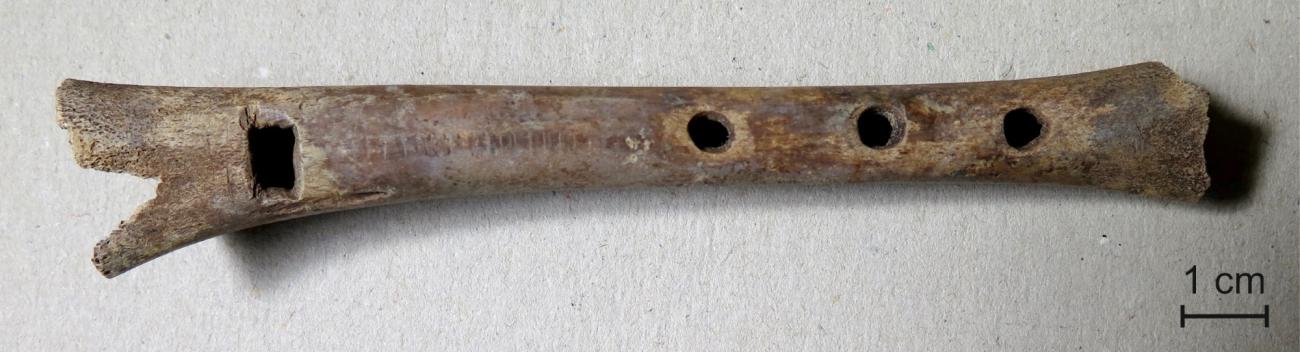 Sound sample: Free improvisation played with a reconstruction of the medieval sheep shin bone flute excavated in the town of Turku, SW Finland. The original fragmentary artefact, dating from the late 14th century to the first half of the 15th century, belongs to the collections of the Museum Centre of Turku (TMM 21816: LU54). The hypothetical reconstruction with three finger holes was made from an unprovenanced medieval sheep shin bone by Annemies Tamboer. The reconstruction is played by Taina Saarikivi. Photo credit to Tessel Grijp, Xander Rijkee and Julia Shpinitskaya: https://youtu.be/FRHkWkuKXlc