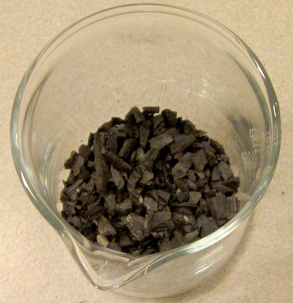 Lime burning in Neolithic pit-kilns was experimentally modelled by using a vertical tubular reactor of stainless steel with an inner diameter of 2.5 cm placed in a tubular electric furnace with a heated length of 60 cm. The samples were placed in separated layers on a fine metallic grid. The facility is a reasonable representation of a kiln as it allows the thermal treatment of materials at controlled temperatures and a gaseous atmosphere. The experimental facility is illustrated in Figure 4. Figures 5-7 show the crushed raw materials utilised for the experiments: Figure 5 shows limestone, Figure 6 shows carbonaceous fuel, and Figure 7 shows malachite.