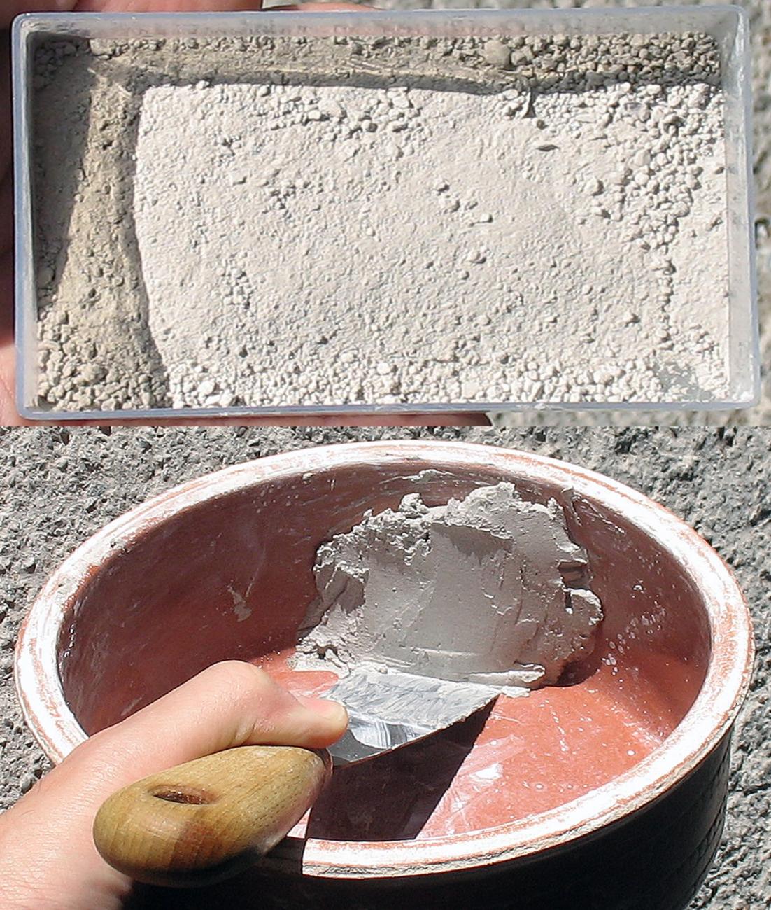 An ash solution that is left to cure over lime plaster produces potassium hydroxide (KOH) or sodium hydroxide (NaOH) (Kirby, Spring and Higgitt, 2005, pp.78-79). Different types of ash produce different types of lye, depending on the plants burned. Ashes from the burning of plant materials give pozzolanic properties2 to mortars and can be added to lime to create hydraulic mortars (Hauptmann and Yalcin, 2000, pp.61, 66-67). However, a) they must be added in the correct proportion in relation to the other materials of the mixture, and b) water must be added to the mixture because ash absorbs the moisture of the lime (Burnell, 1865, p.63). According to Burnell (1865, p.63), wood ash must be washed before it can be used for a mortar. A floor mortar of 8700-7000 BC that was made of lime with ash particles from volcanic tuffs is preserved in Aşıklı Höyük in Anatolia (Hauptmann and Yalcin, 2000, pp.61, 66-67). Forbes (1965, p.243) reported that in Mesopotamia, craftsmen used a mortar made out of lime plaster and ashes, which was spread in 4 mm thick layers. In later periods, pieces of coarsely-ground brick were also added to the mixture.