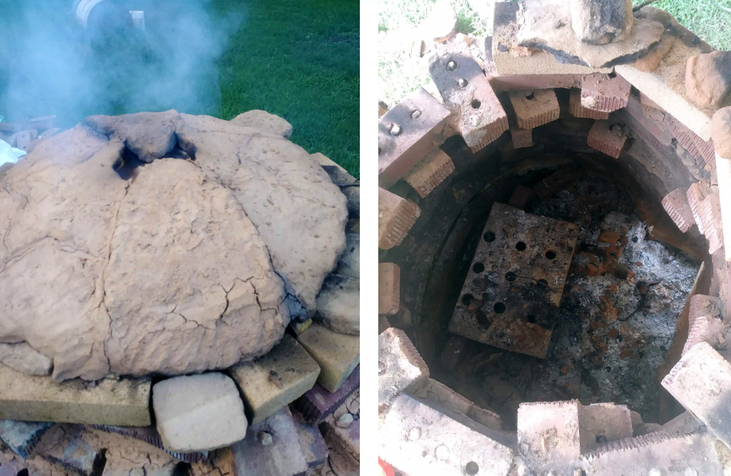After those last hours, the kiln was completely closed after a final stoking. Covering up the kiln took approximately fifty minutes and involved the application of slip from the local clay and newspaper. This was a very important step that was needed in order to cover all the holes and any cracks that developed throughout the long firing process. The kiln was left to cool down very slowly so that none of the ceramic vessels would be damaged.