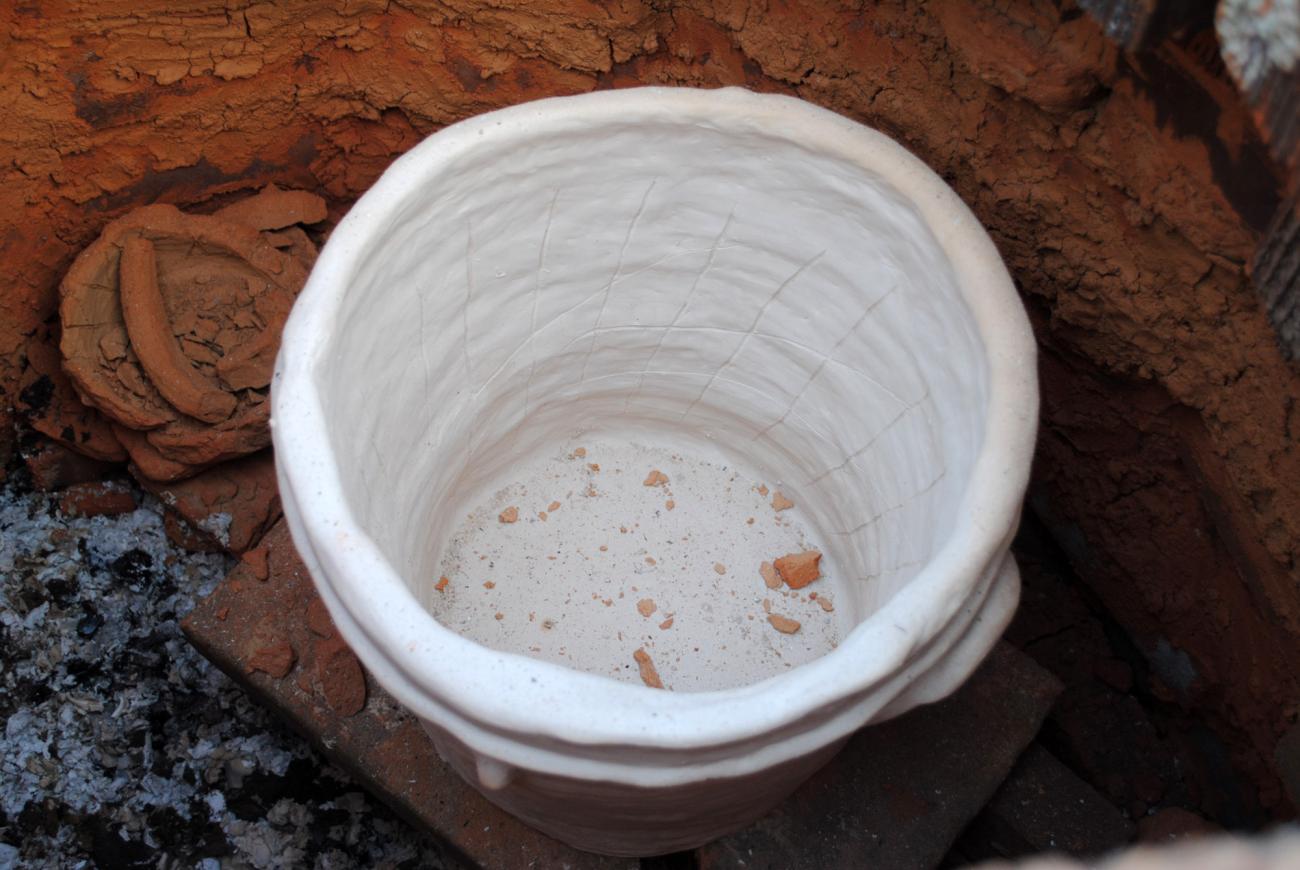 Regarding the pilot test versions of the ceramic vessel, the stoneware clay seemed to have consumed the least time in this portion of the experiment. Stoneware was purchased through a local pottery shop. The clay itself was a light grey that turned completely white after the drying phase. The scoring inside as stated above was only designed as an example for the large-scale version. âXâ-scoring the inside of the vessel was done using the slightly sharp end of a pottery tool.