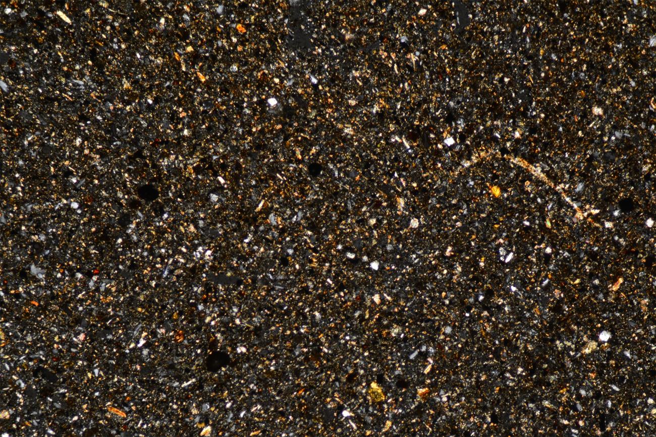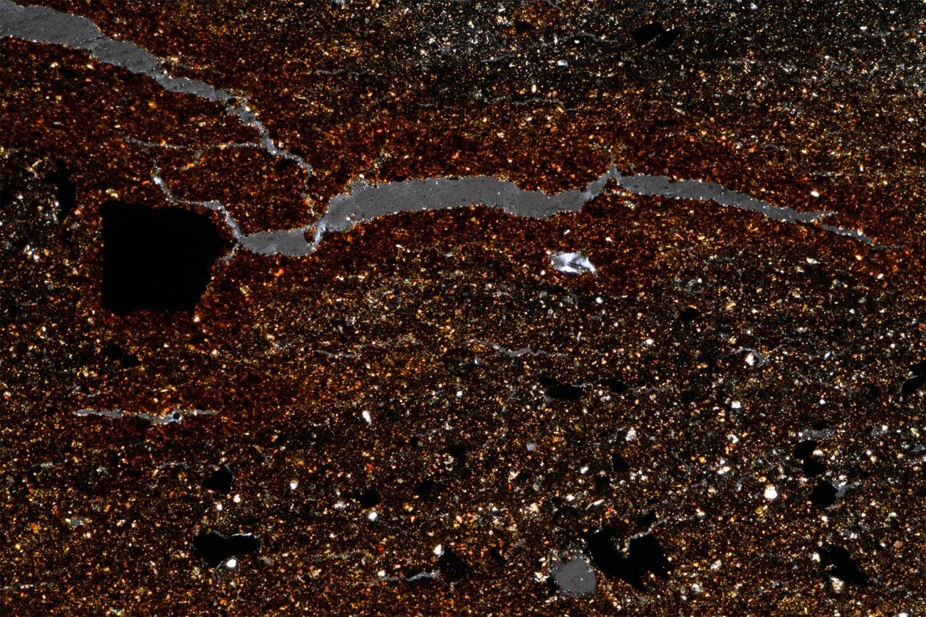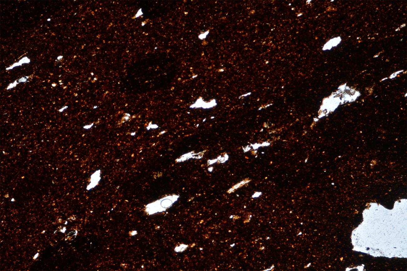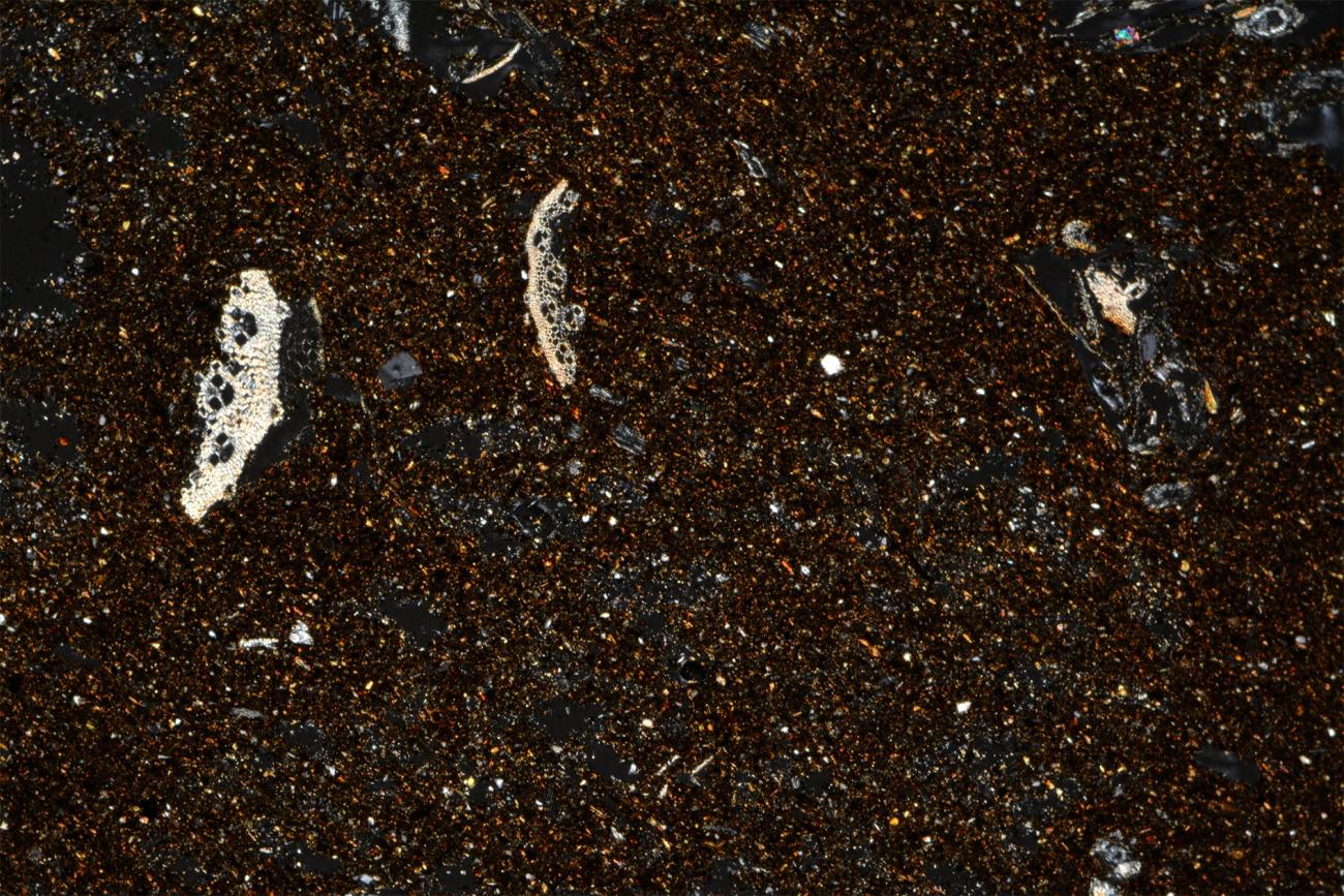 Another point to consider is the size of voids left by the combustion of organic matter, which is typically smaller under the microscope than appears to the naked eye. This depended on the instrumentation, how the thin section was cut, and how the fibres in the paste were oriented. Where the transverse section of the organic fibre was visible, it appeared, in fact, spherical or sub-spherical and obviously smaller in size.