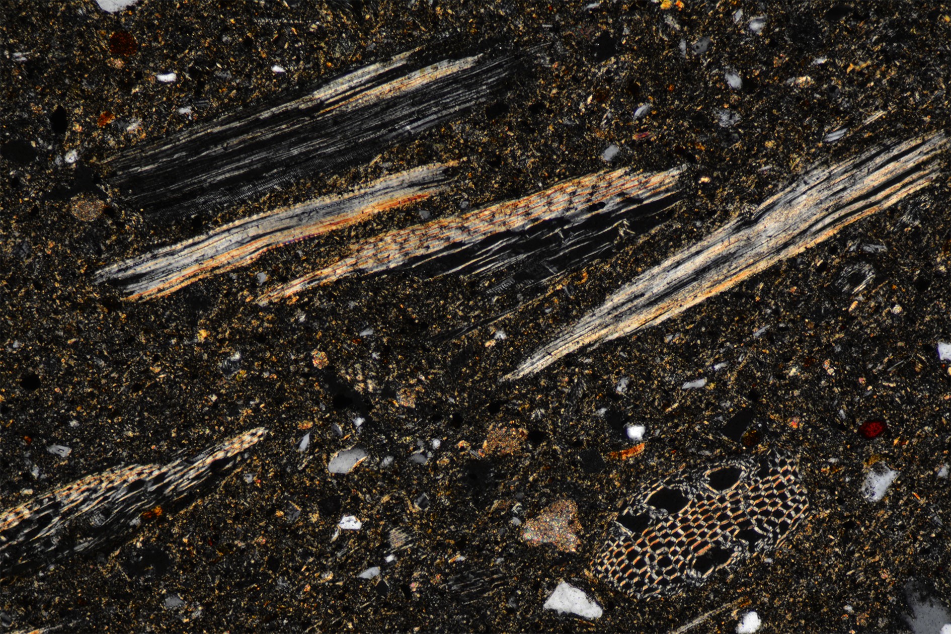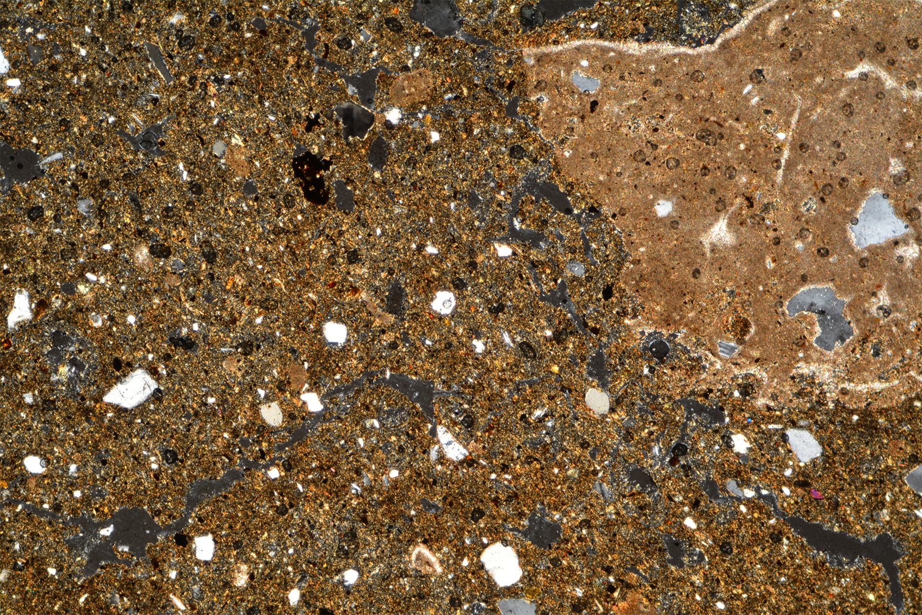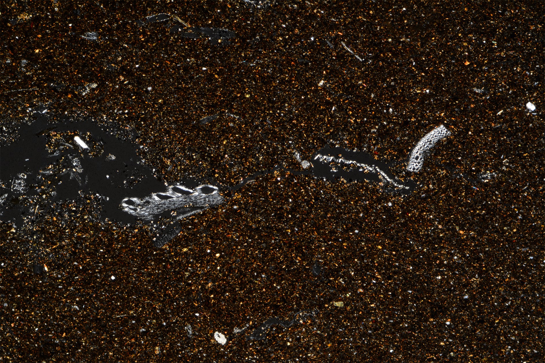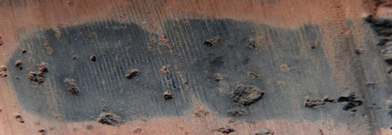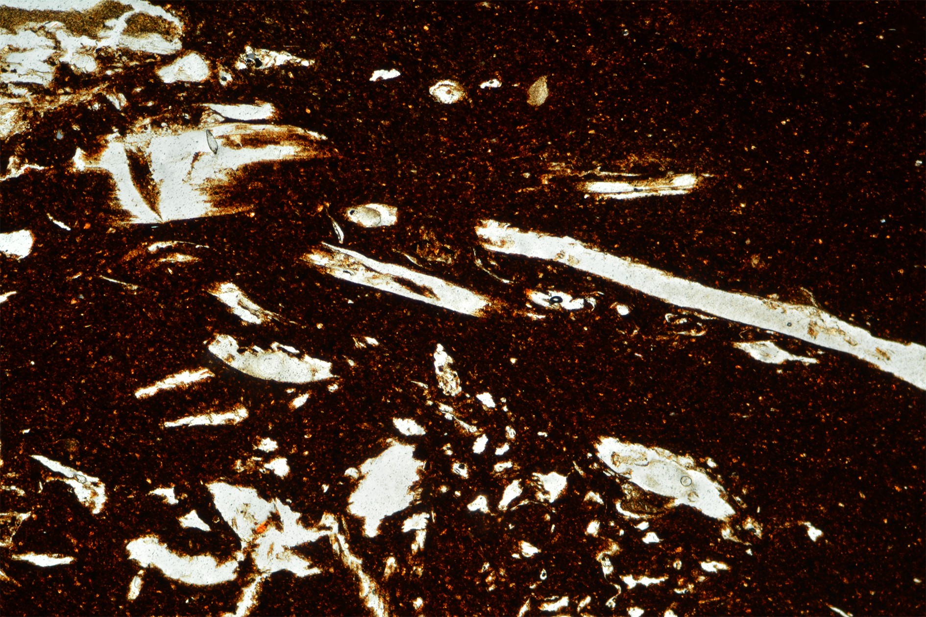 Another point to consider is the size of voids left by the combustion of organic matter, which is typically smaller under the microscope than appears to the naked eye. This depended on the instrumentation, how the thin section was cut, and how the fibres in the paste were oriented. Where the transverse section of the organic fibre was visible, it appeared, in fact, spherical or sub-spherical and obviously smaller in size.