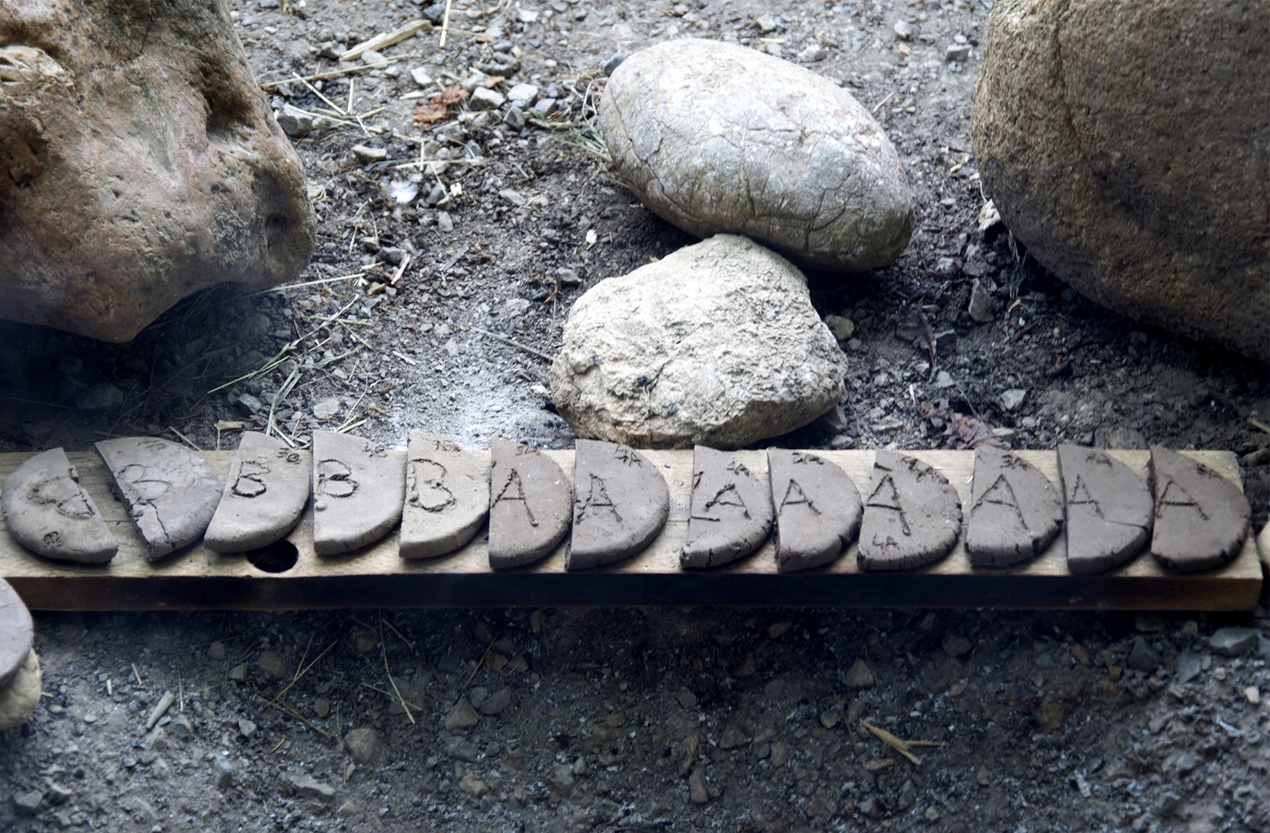 The experiment was held in June 2014 at the “MAMUZ” open-air museum in Asparn (Lower Austria) as part of the AcrossBorders’ cooperation with the experimental archaeology class organised by the University of Vienna. The project required the preparation of seventeen clay test discs, c. 9 x 9 cm in size with a thickness of c. 1.5 cm. The test discs were prepared over three days and, on a later date, fired according to a scientific protocol. The protocol consisted of four steps, which correspond to the following stages of the manufacturing sequence: