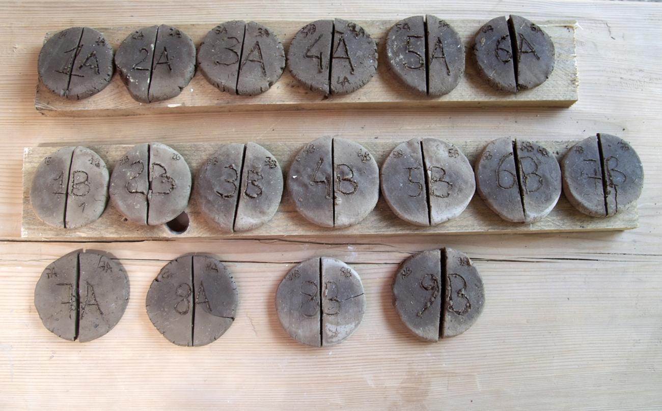 Table 1. Sets of test discs formed of clay A and B.