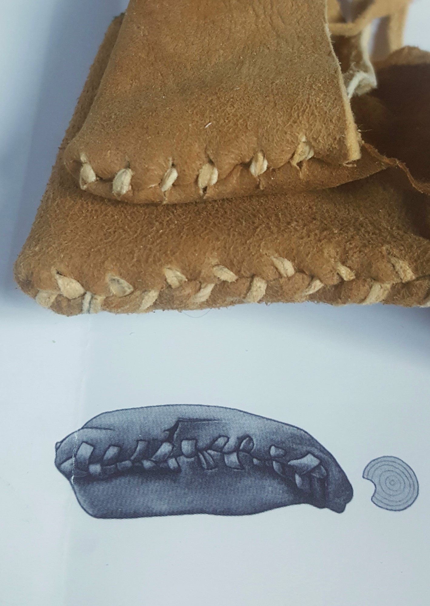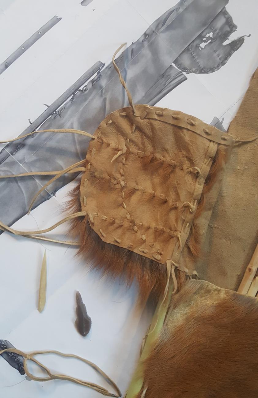 In addition to the question of the animal species, the identification of initial skin preparation options is of essential interest for an authentic reproduction. The preparation and further processing of animal skins is an important technological complex, although the methods used are difficult to grasp archaeologically for prehistory, since they generally leave hardly any traces in the ground. For the late Neolithic in the Alps, however, there are actual artefact finds made of leather and fur. These include the accompanying finds of the Iceman and objects from an Alpine pass in Switzerland, the Schnidejoch. Parts of leather leggings and a shoe were secured there (Suter, Hafner and Glauser, 2005, p.512).