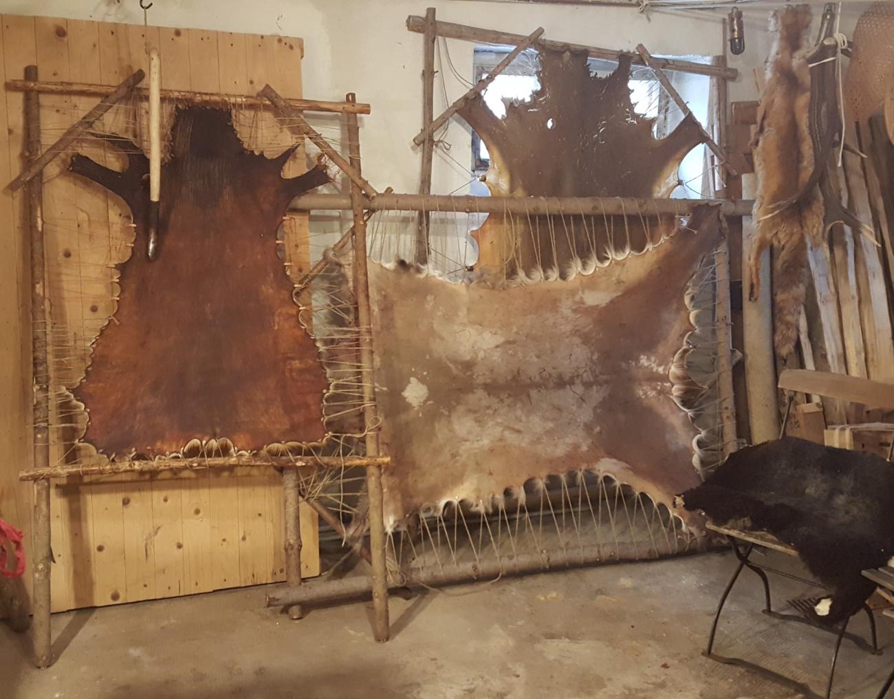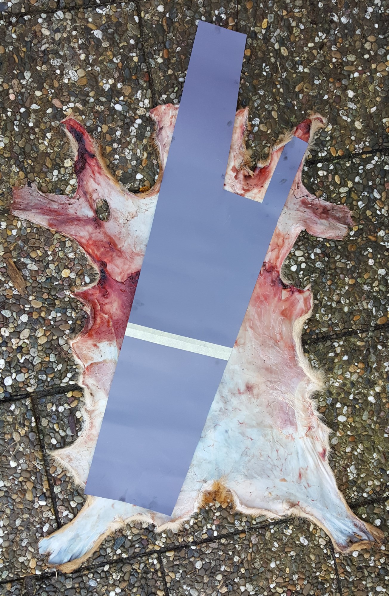 The fresh skin of an adult roebuck (capreolus capreolus) was used, which was shot in October, i.e. still in its reddish summer coat (See Figure 6). Stretching the hide in a frame during the tanning process ensures that the hide retains its maximum size after tanning and lies as flat as possible (See Figure 7).