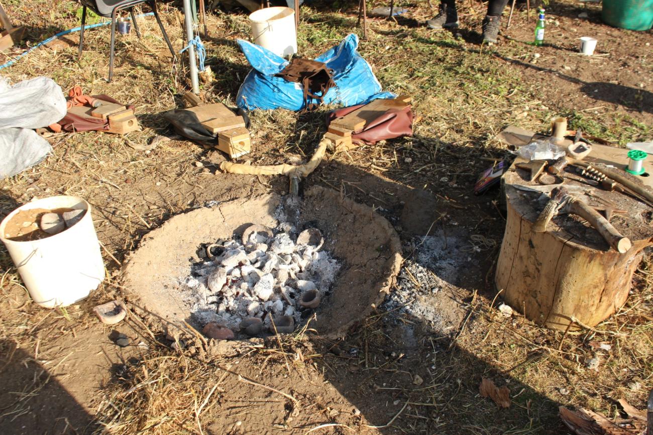 This year the course was organised by Eleanor Blakelock and taught by Giovanna Fregni. Students of the course learned about the significance of experimental archaeology and how it is a part of experiencing craft in the past. Activities included the basics of mixing clay bodies for high temperature work and building a small pit furnace in addition to making crucibles. The day continued with participants making moulds from cuttlefish bone, some of which were harvested from beaches on the south coast of England. Cuttlefish bone is an excellent medium for learning to carve moulds, and the students were soon casting small pieces of jewellery.