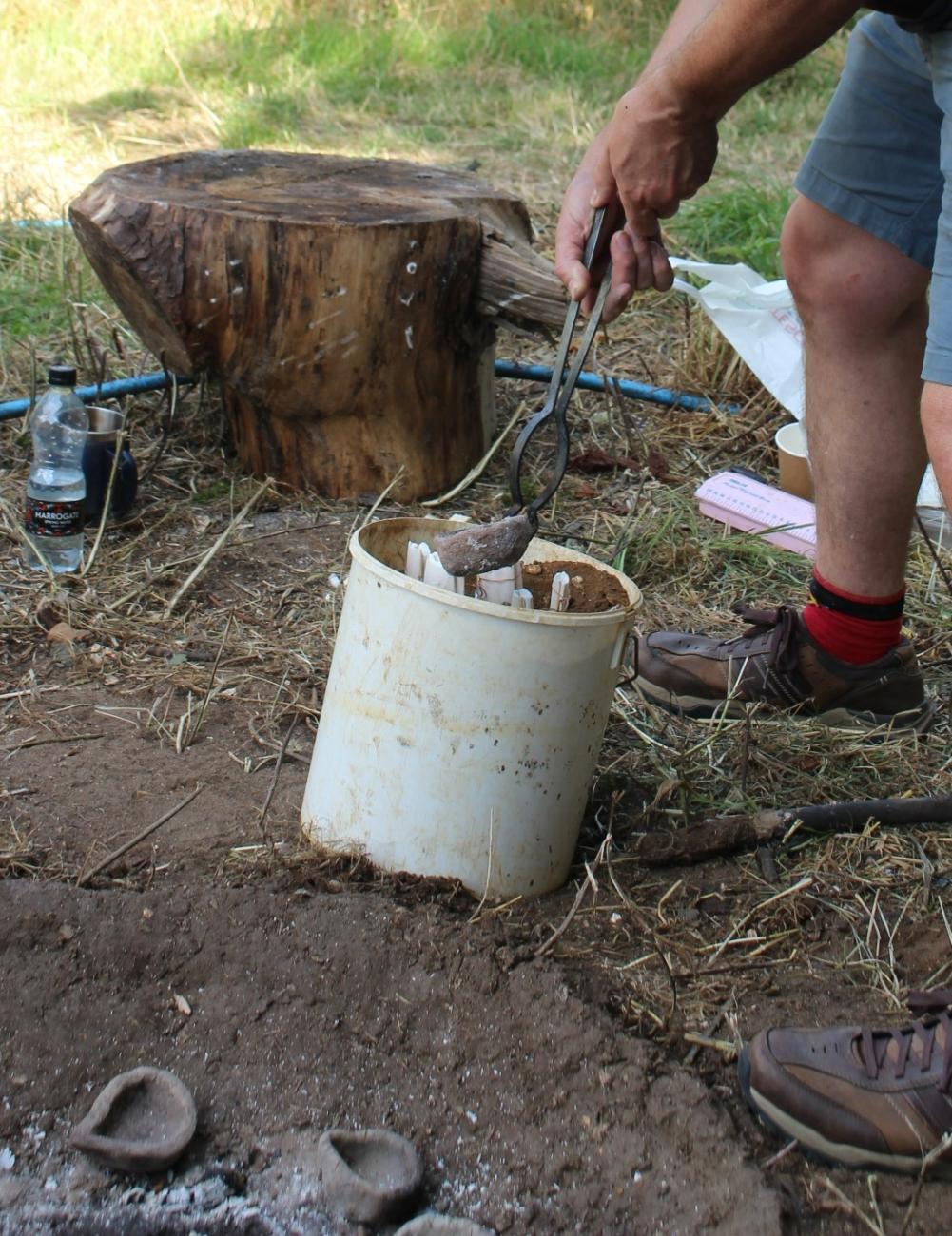 On Sunday, despite the unprecedented heat, students demonstrated their skills in casting and invited the public to watch and also make some moulds of their own. Both students of archaeological metals and field archaeologists benefited from seeing the processes of metalwork. Students of metallurgy gained insight into the processes of metalworking in pre-industrial societies, and field archaeologists got a rare glimpse of how metalworking sites could have been formed.
