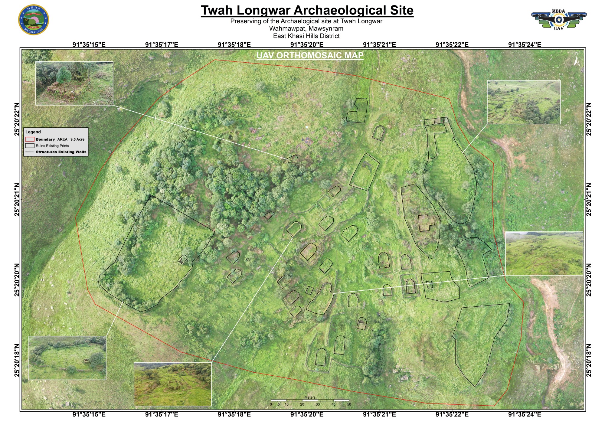Surface exploration of the site of Twah Longwar has been carried out. Modern technology has greatly aided in comprehending the area before archaeological excavations are carried out. Architects are assisting with the digital reconstruction of the structures, and a drone crew has contributed to the GIS and LiDAR scan to better the understanding of the site.