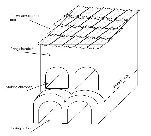 A single layer of 100 tiles was packed: some edge to edge, others stacked vertically against them, forming a hollow cube. This haphazard arrangement was due to the uneven floor of the kilnâs firing chamber but allowed for the maximum possible air movement between them. Laid on top of these tiles was a single layer of modern, clay roof tiles which formed a roof over the firing chamber.