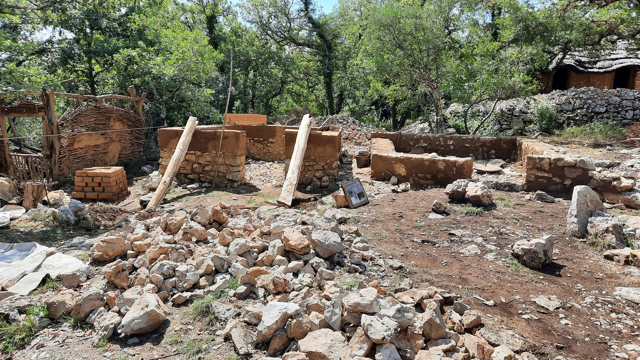 The archaeological material for this period is scarce locally and does not give enough data for reconstruction. Thus, the decision was made to experiment on building techniques of the various types of habitats encountered in archaeological excavations throughout the south-eastern quarter of France in the regions near Ardèche such as Gard and Herault. The building material was chosen to fit the local climate and resources, and to provide reconstructions that would be compatible with the archaeological context of southern Ardèche. The implementation of the houses is also a delicate choice, as the original constructions may have been erected on softer grounds than that of Randa Ardesca. The typical landscape here is full of stones.