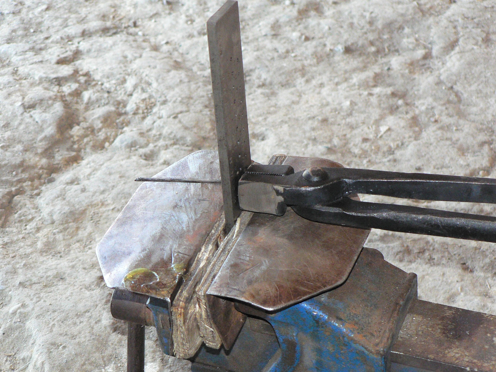 The tip of the wire broke several times, but the cent piece remained intact on both pieces. It was annealed, filed, and greased between each draw. Sheep tallow was used here, as it was a more available resource than beeswax and worked satisfactorily. The smiths also switched to a pair of pliers with serrated jaws that provided a significantly better grip during drawing (See Figure 8).