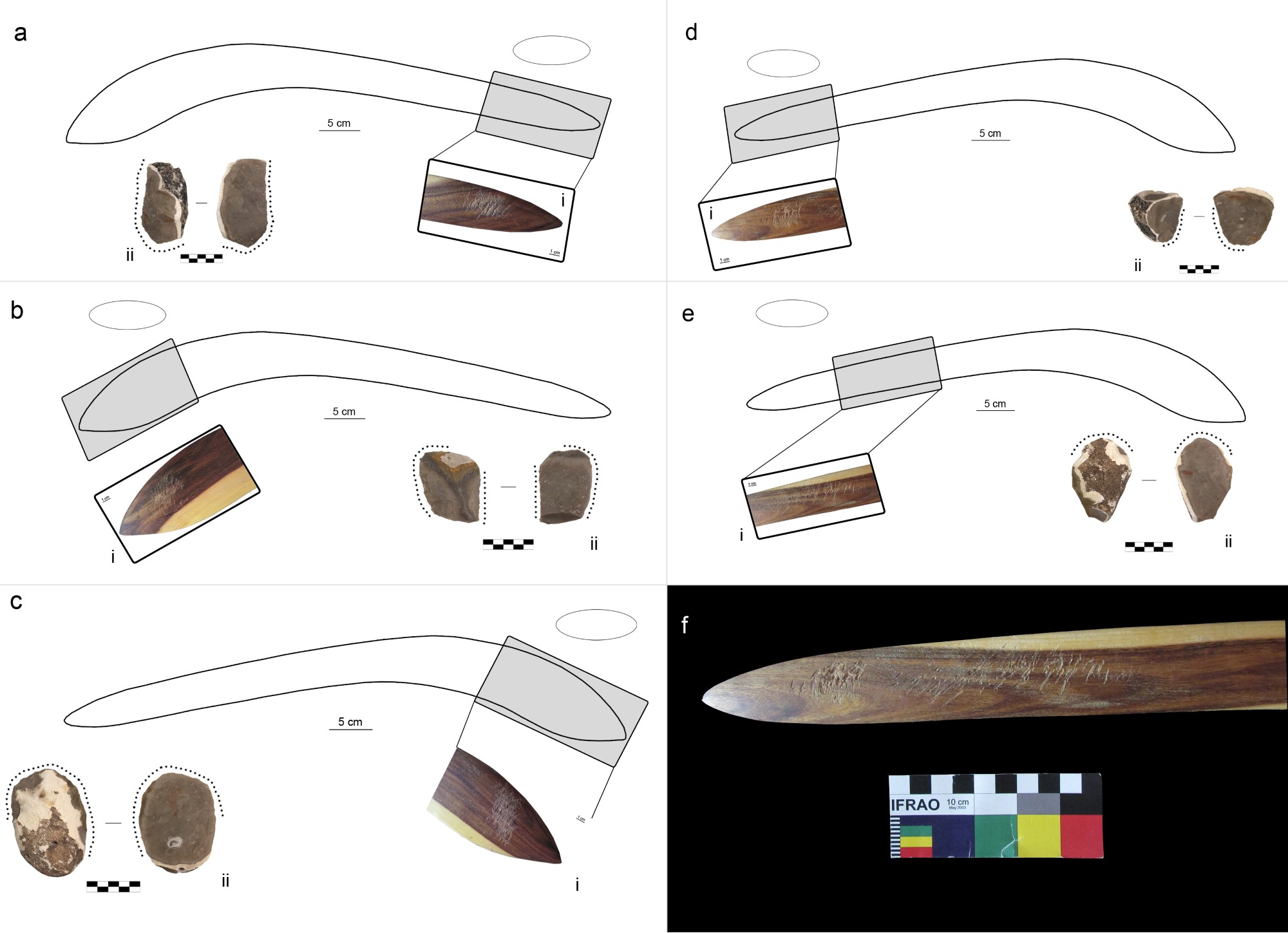 - traceological similarities between retouch-induced impact traces observed on boomerangs and bone retouchers.