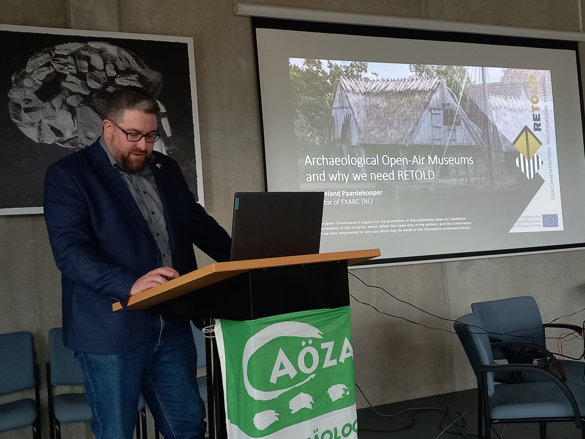 The first day of the meeting started with an official and public opening, in which representatives from the county of Dithmarschen and from the municipality of Albersdorf welcomed the participants. Dr Roeland Paardekooper (director of EXARC) introduced the guests to the content and the idea of the RETOLD Project, followed by Dr George Tomegea from the ASTRA Museum (Sibiu, Romania) who presented the results of the SWOT analysis of the use of digital tools in the three partner museums. The official part of the meeting ended for the day with an introduction to the Stone Age Park Dithmarschen and a guided tour held by Dr Rüdiger Kelm.