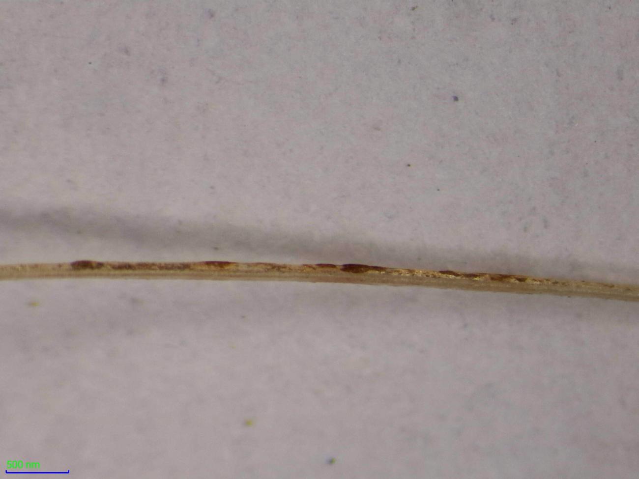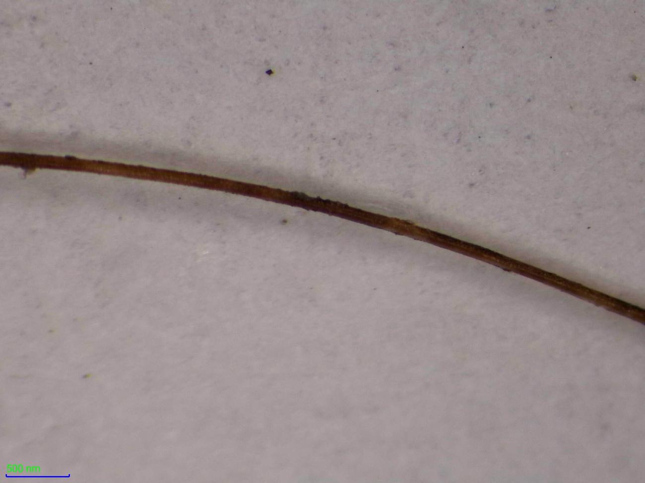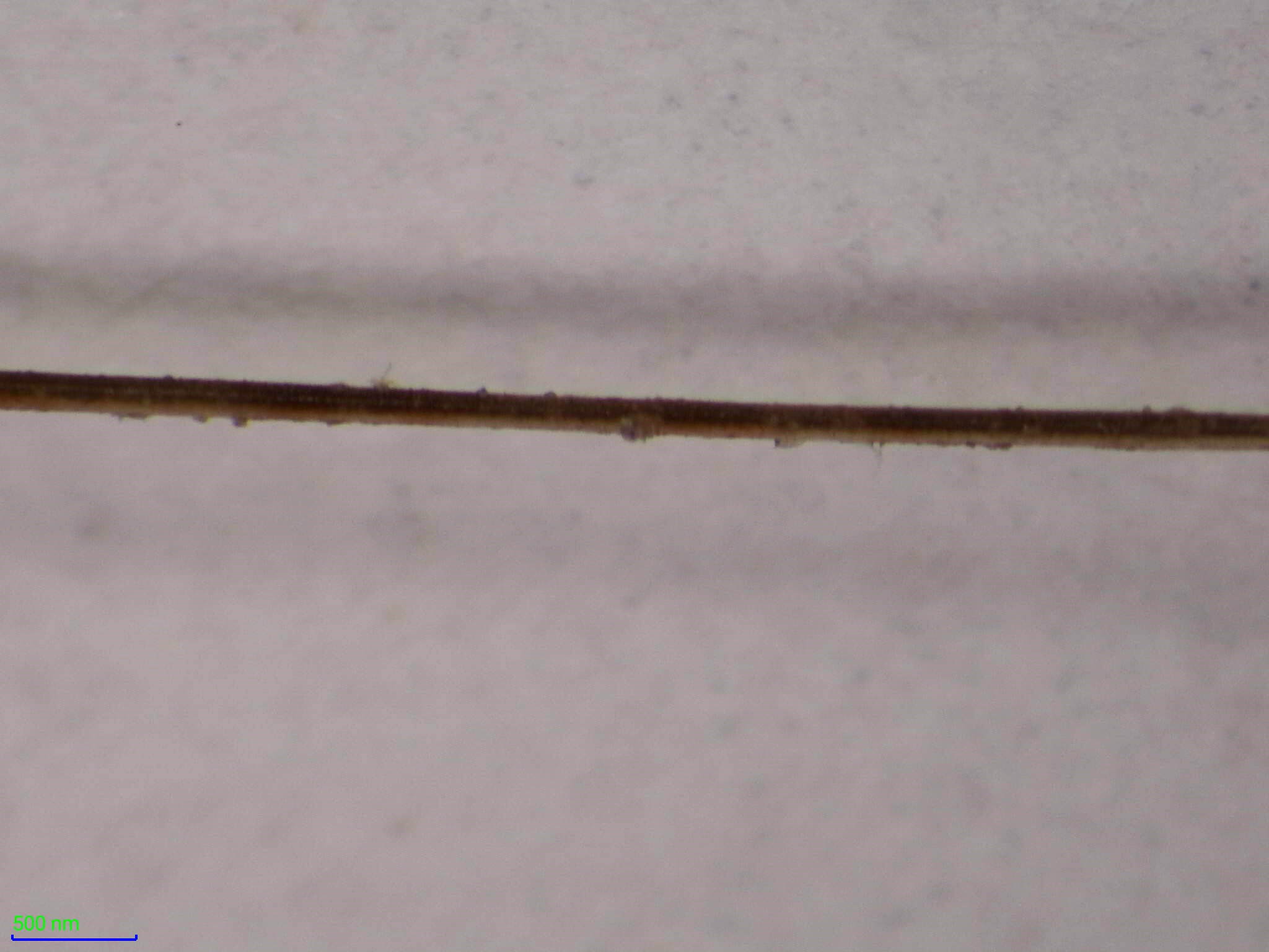 Using a stereo microscope at 21x magnification, microscopic observations were carried out on the grey hair samples before hair colouring (See Figure 22 and Figure 23), both samples after washing with ganshuijiang (See Figure 42 and Figure 43), and both samples after colouring with mineral hair colour for 30 minutes (See Figure 44 and Figure 45), one hour (See Figure 46 and Figure 47), three hours (See Figure 48 and Figure 49), and 18 hours (See Figure 50 and Figure 51). The trends of the colour change of the youthful samples and elderly samples from pre-colouring to post-colouring were analysed and compared with that of the colouring effect of the mineral hair colour (See Table 1).