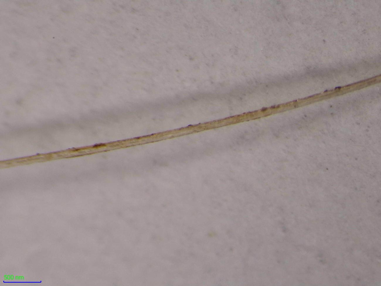 In the experimental process, using a stereo microscope at 21x magnification to examine the samples, (i) the youthful grey hair samples (See Figure 22) and elderly grey hair samples (See Figure 23) before hair colouring, and (ii) the youth hair samples (See Figure 24) and elderly hair samples (See Figure 25) after washing with the huizhi, and (iii) the youth samples after hair colouring with herbal hair colour, were examined at 30 minutes (See Figure 26 and Figure 27), one hour (See Figure 28 and Figure 29), three hours (See Figure 30 and Figure 31), and 18 hours (See Figure 32 and Figure 33). The microscopic observations were performed to analyse the colour of the samples from before to after hair colouring to detect any trends in colour change (See Table 1).