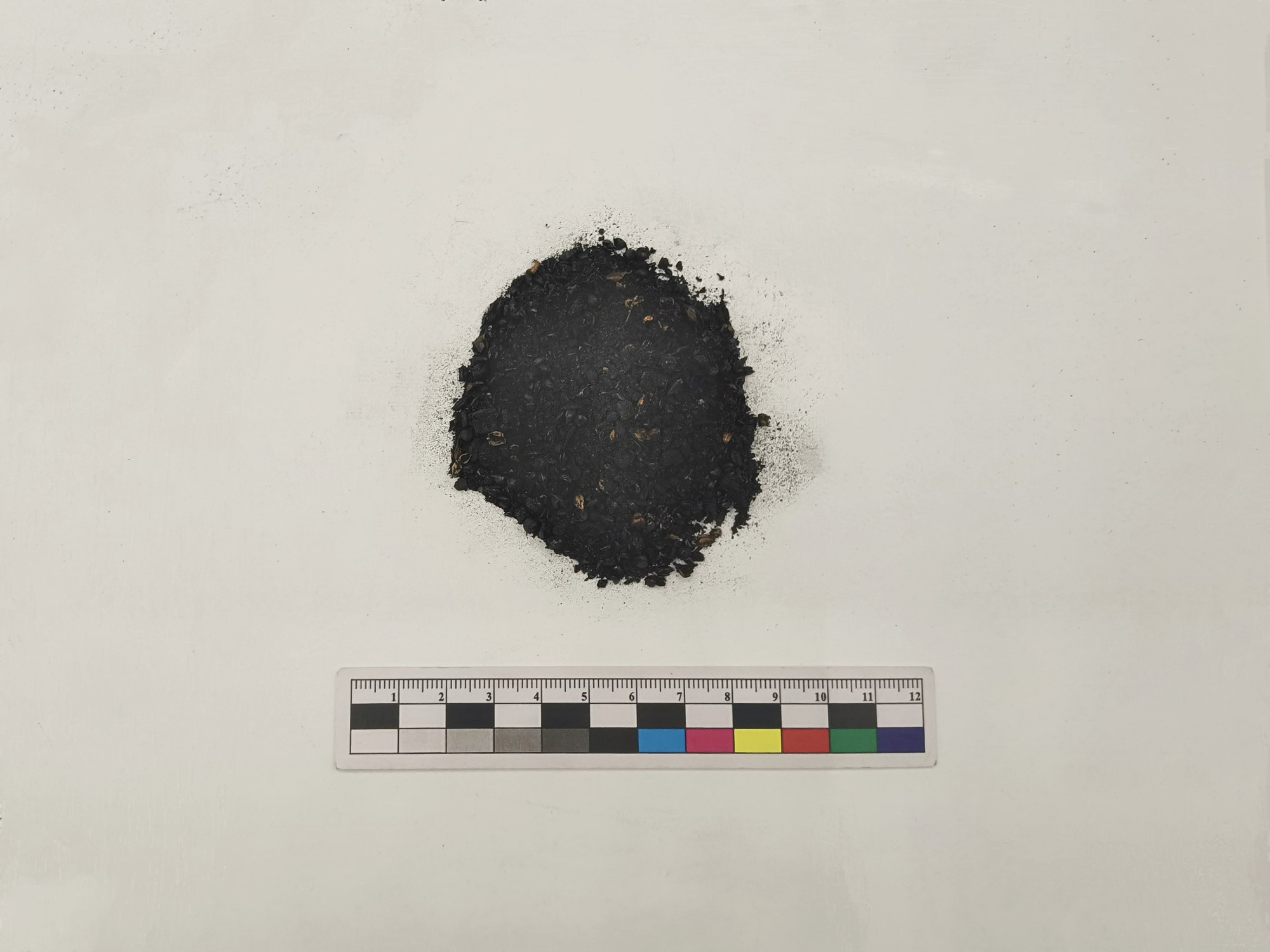 Due to the presence of huizhi, a material that was used as a shampoo in the process of the hair colour for the function of cleaning the hair before colouring in Experiment 1, it needs to be prepared in advance in the preparation of the experiment. Firstly, the plants were burnt and left to cool and stand. The burnt plants were placed in a mortar and ground using the pestle to obtain a black coloured plant ash powder form (see Figure 4) Subsequently, 10 ml of the plant ash was taken and mixed with 80 ml of water to form a light brown coloured liquid (See Figure 5).