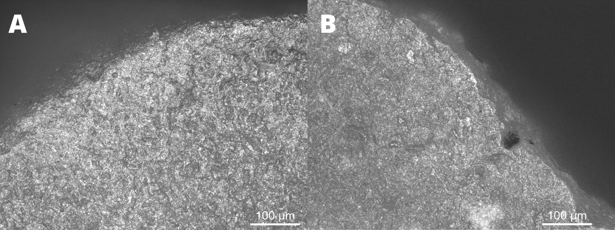 A clear distinction between the scrapers used to scrape hide with clay and those used to scrape hide with sand could not be made. Both are characterised as a highly linked band of smooth and matt and/or a highly linked band of rough and matt polish with heavy edge rounding, transverse directionality and occasionally by the presence of striations. It seems that the rougher polish, which is mostly observed directly on the edge, is caused by direct contact with the hide. The smoother polish is likely caused by contact with the additives. As a group these traces can be clearly distinguished from other hide-working processes such as fresh hide scraping, softening of hides, and dehairing. The extreme rounding in combination with a highly linked, extremely invasive, band of polish which is also visible macroscopically is not observed on other types of hide-working experiments (Keeley and Newcomer, 1977, pp. 39-42; Petrogiannaki, 2022, pp. 48-50; Van Gijn, 1990, pp. 28-30).