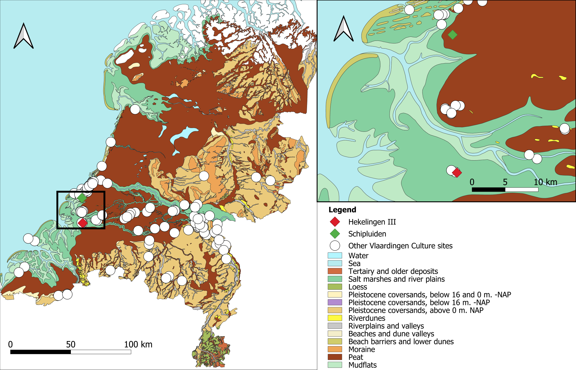 This study aimed to gain insight into the variability in hide-working traces on flint scrapers from the Neolithic Vlaardingen Culture (3400-2500 BC). However, the results are also applicable to the study of other periods and regions. Sites from the Vlaardingen Culture are mainly located in the wetland areas of the western Netherlands. These sites are characterised by a wide diversity in terms of subsistence strategies and their location within the landscape. It is thought that the sites in the coastal dune area are generally permanently inhabited while those on the levees consist of temporary camps (Raemaekers, 2003, p. 744).