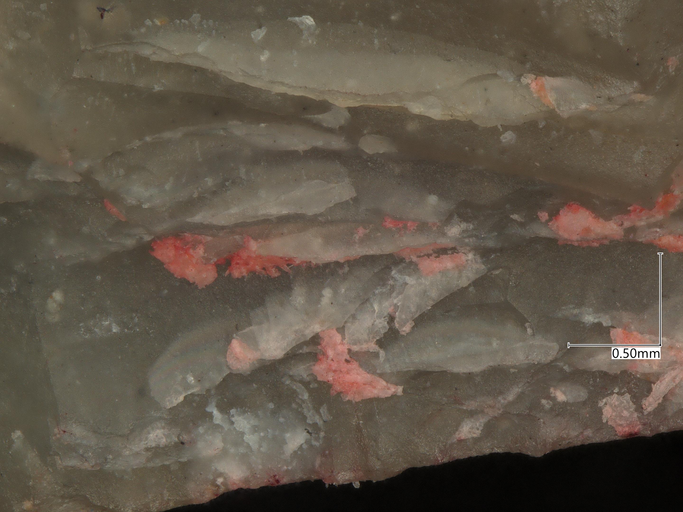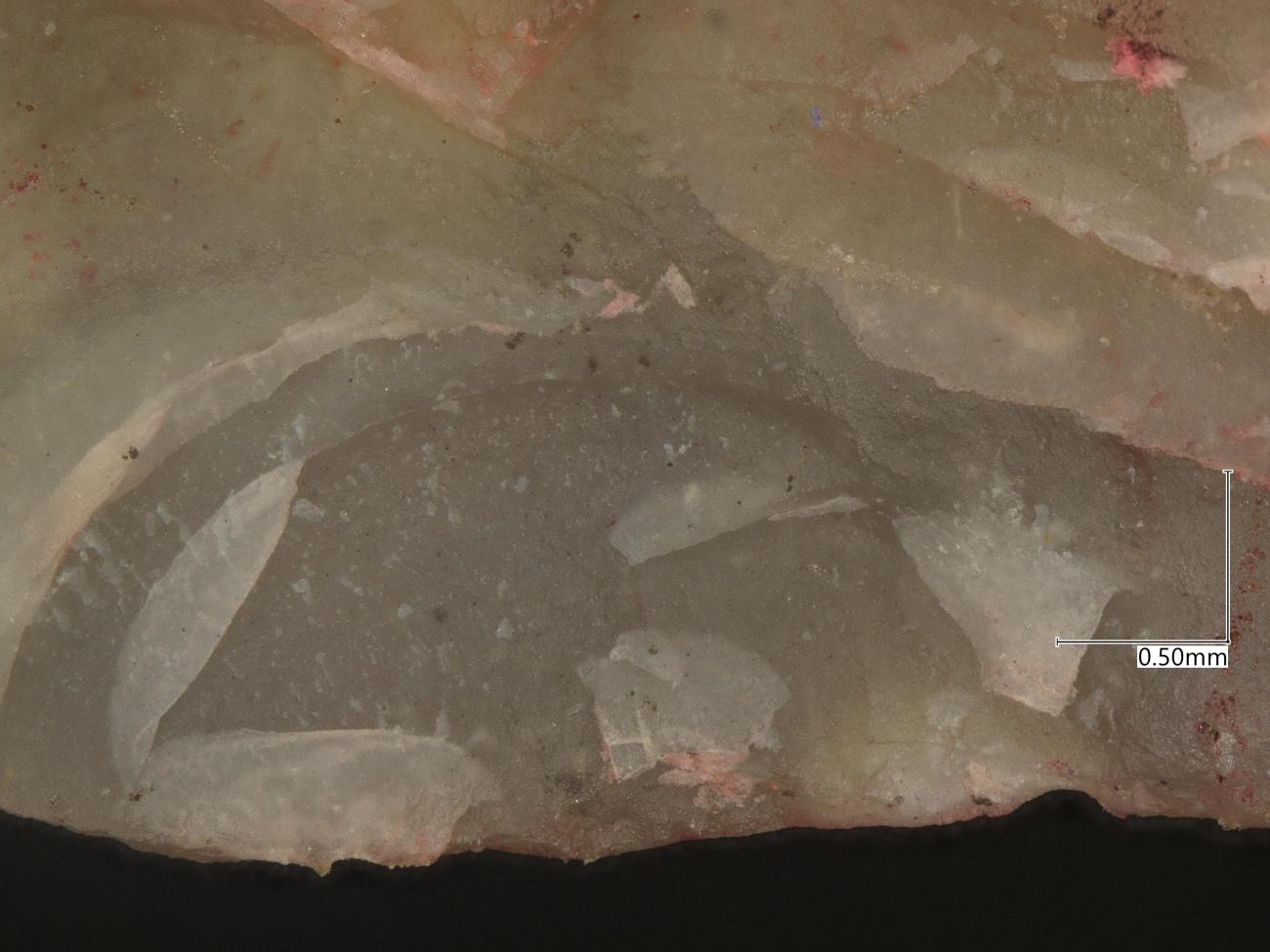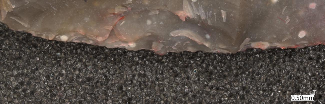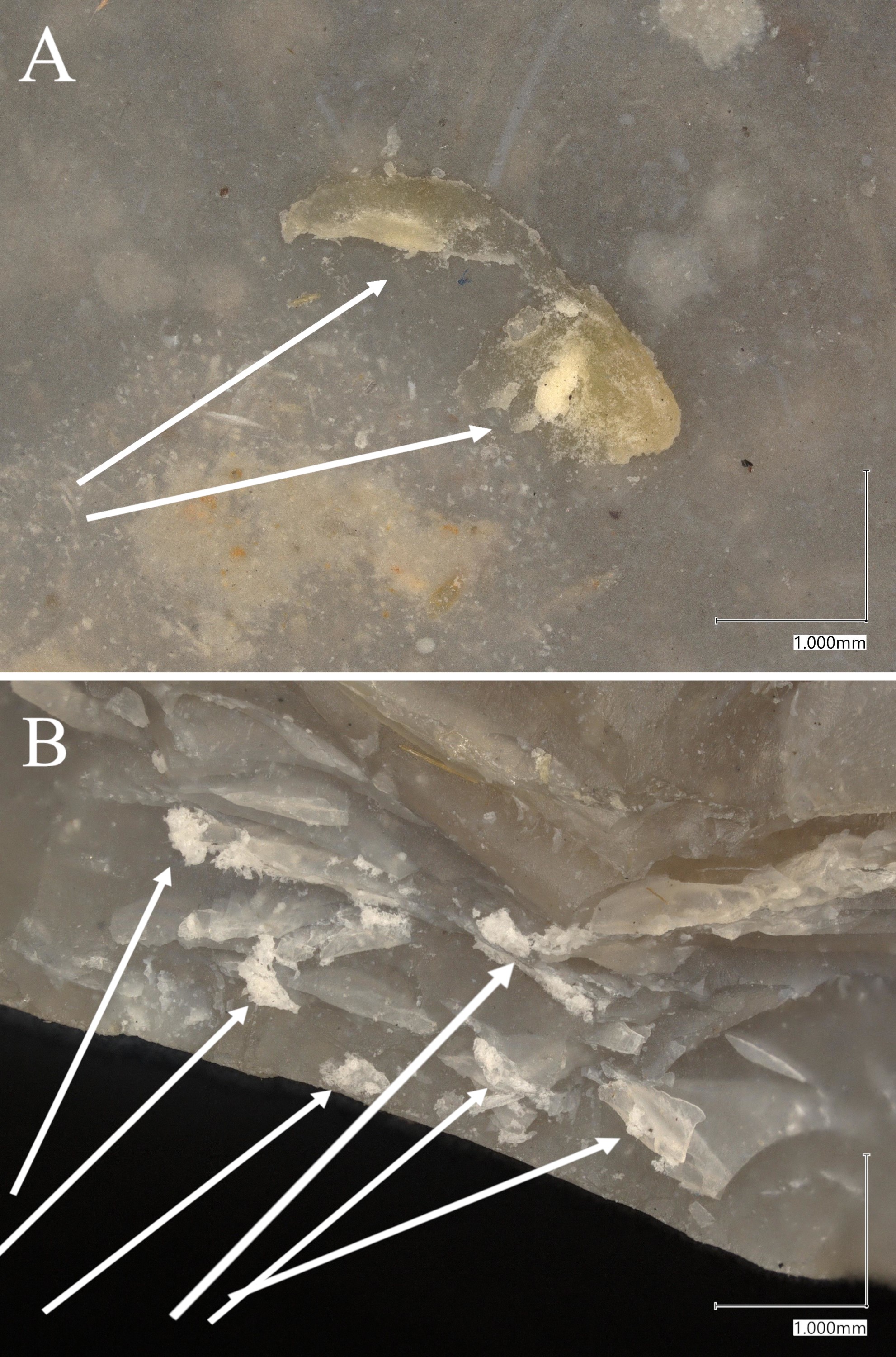 Experimental bifaces were analysed using a Meiji techno RZ binocular microscope using an LED ring light to identify sites containing biological matter. Each biface was primarily analysed at a 7.5x to locate potential micro-niche traps, followed by the use of a higher magnification (up to 75x) to investigate any traps detected. The full investigation and recording of micro-niches with biological matter took approximately one hour for each experimental biface.