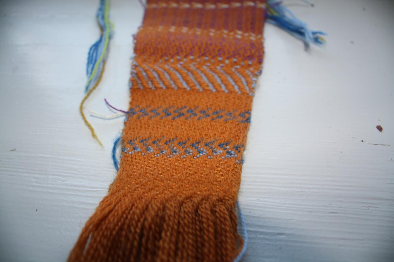 - I went back to the starting border and made a new shed in the starting border, by using the rigid heddle. Then I did the same again, as described in point 3.