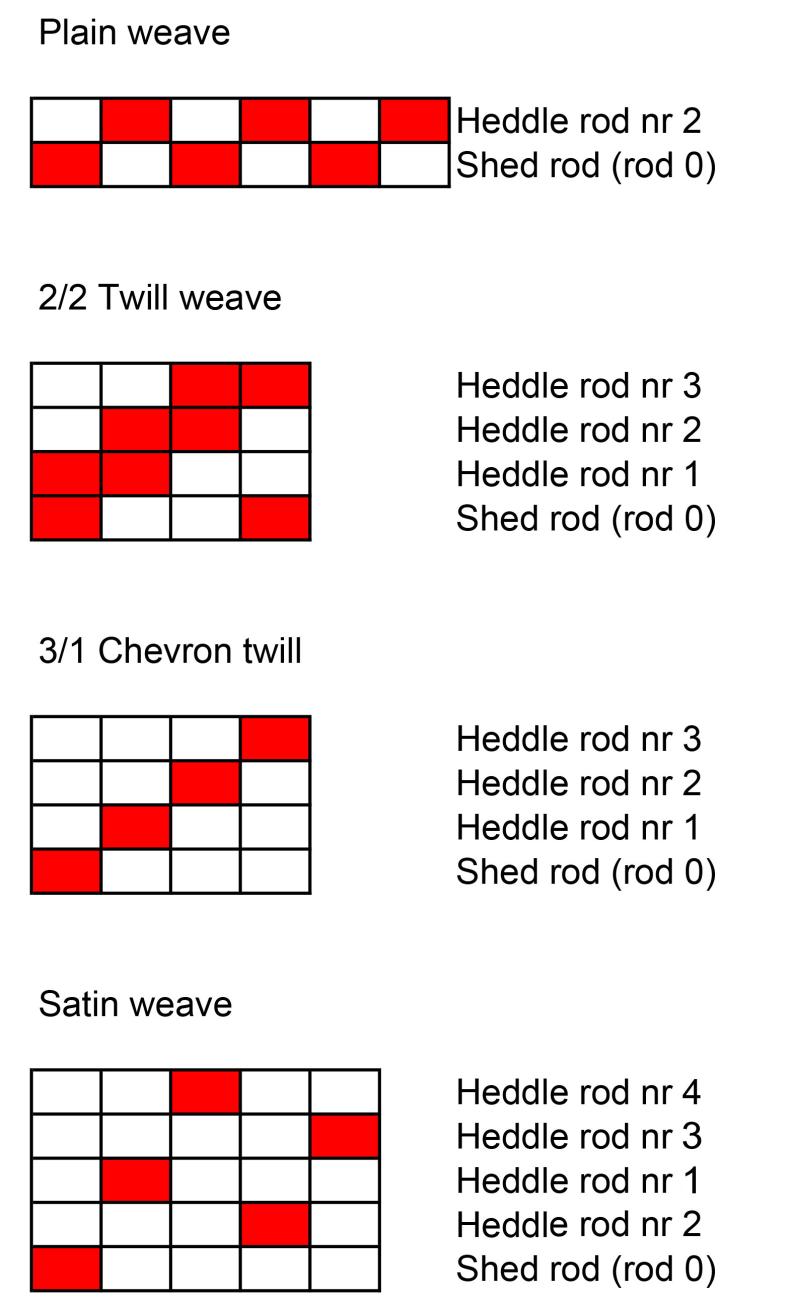 Table 1. Distribution of warping threads for 5 end satin on the warp-weighted loom.