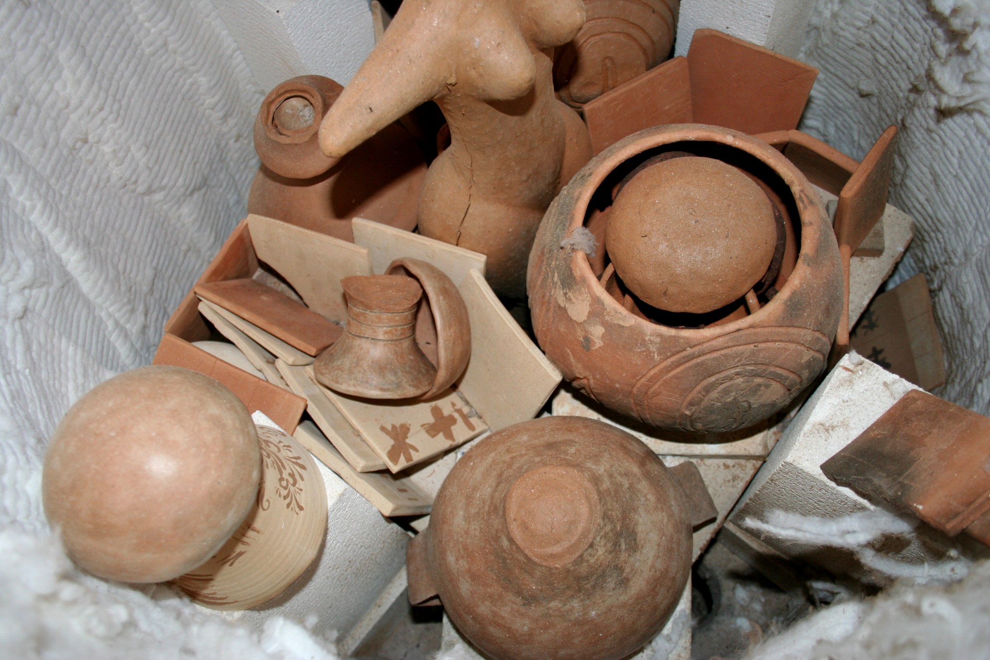 To thoroughly evaluate how certain thermal features affected the sheen and the reflection of sunlight off the burnished surface of the pottery, as was the case following the traditional firings, a series of experimental firings were conducted in the laboratory.